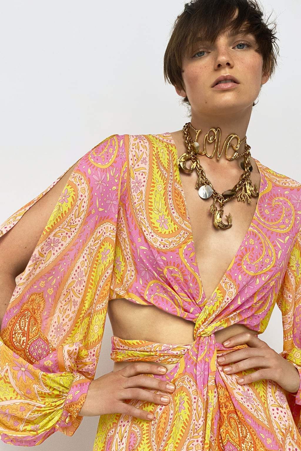 Gloria Paisley Baskılı Fırfırlı Uzun Elbise