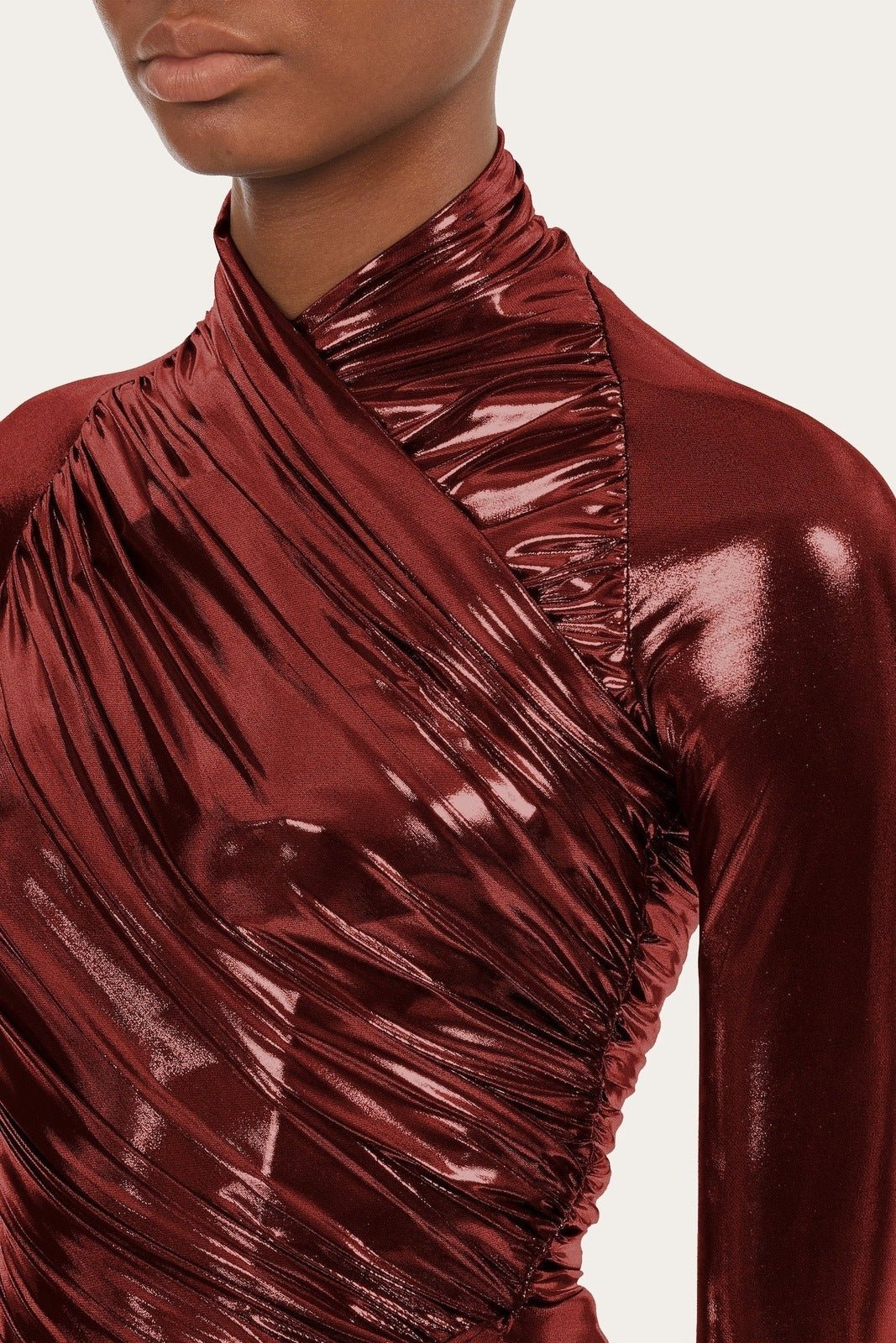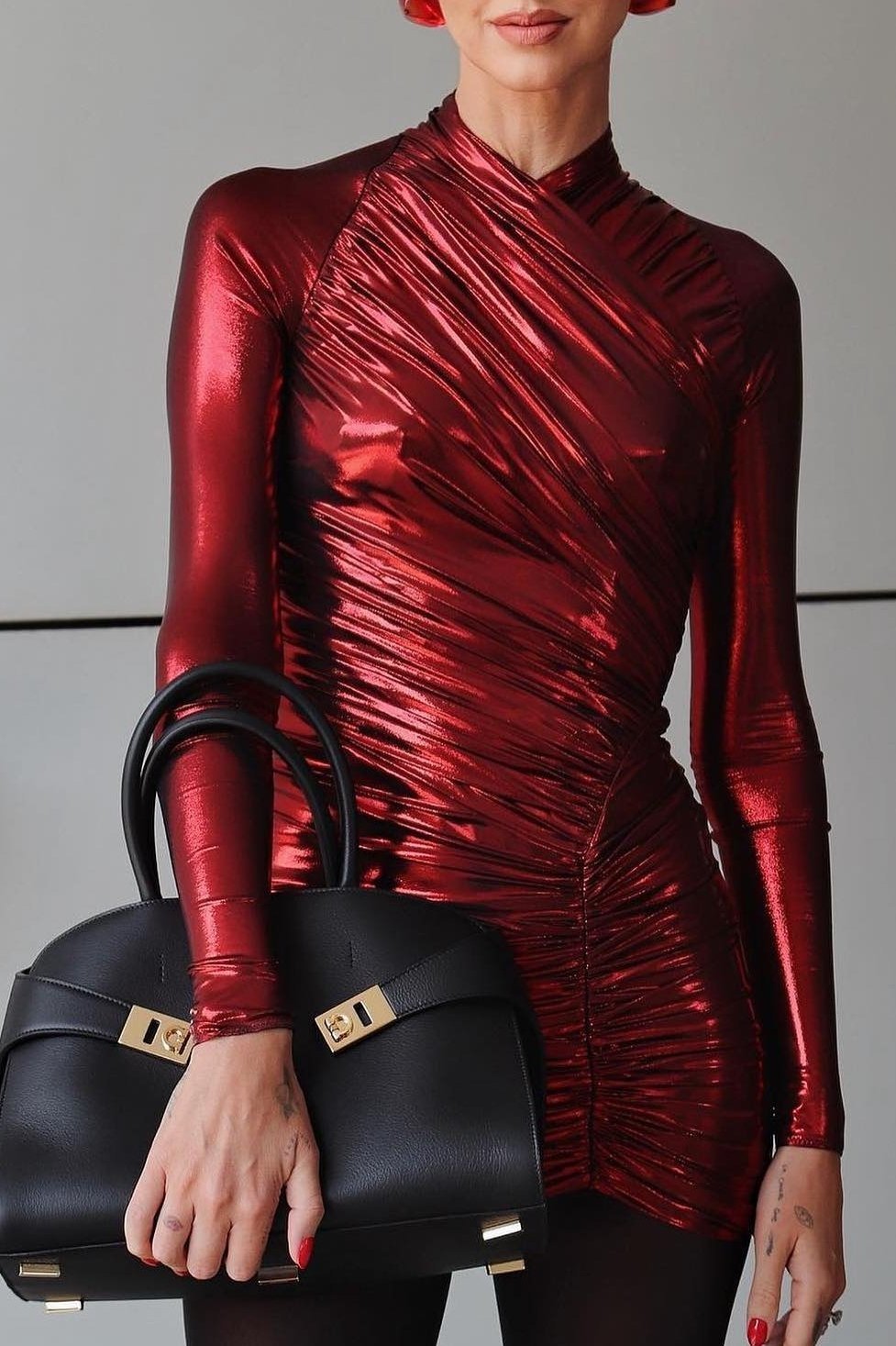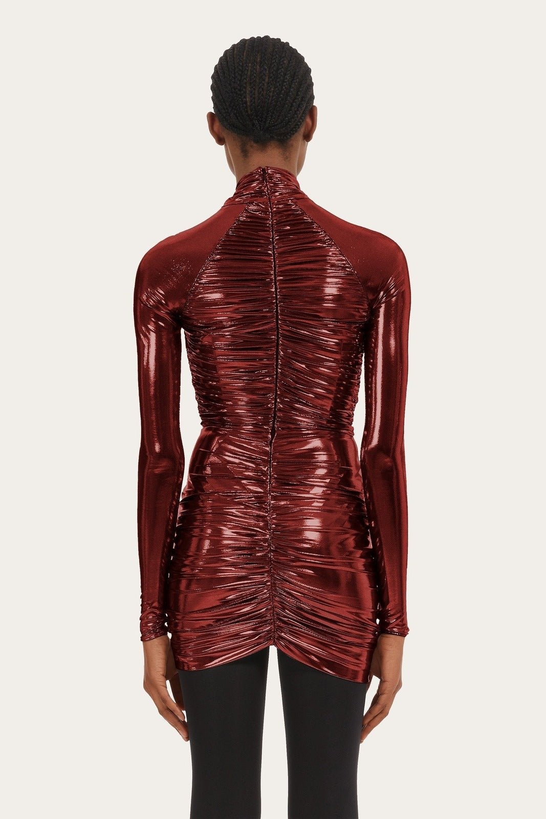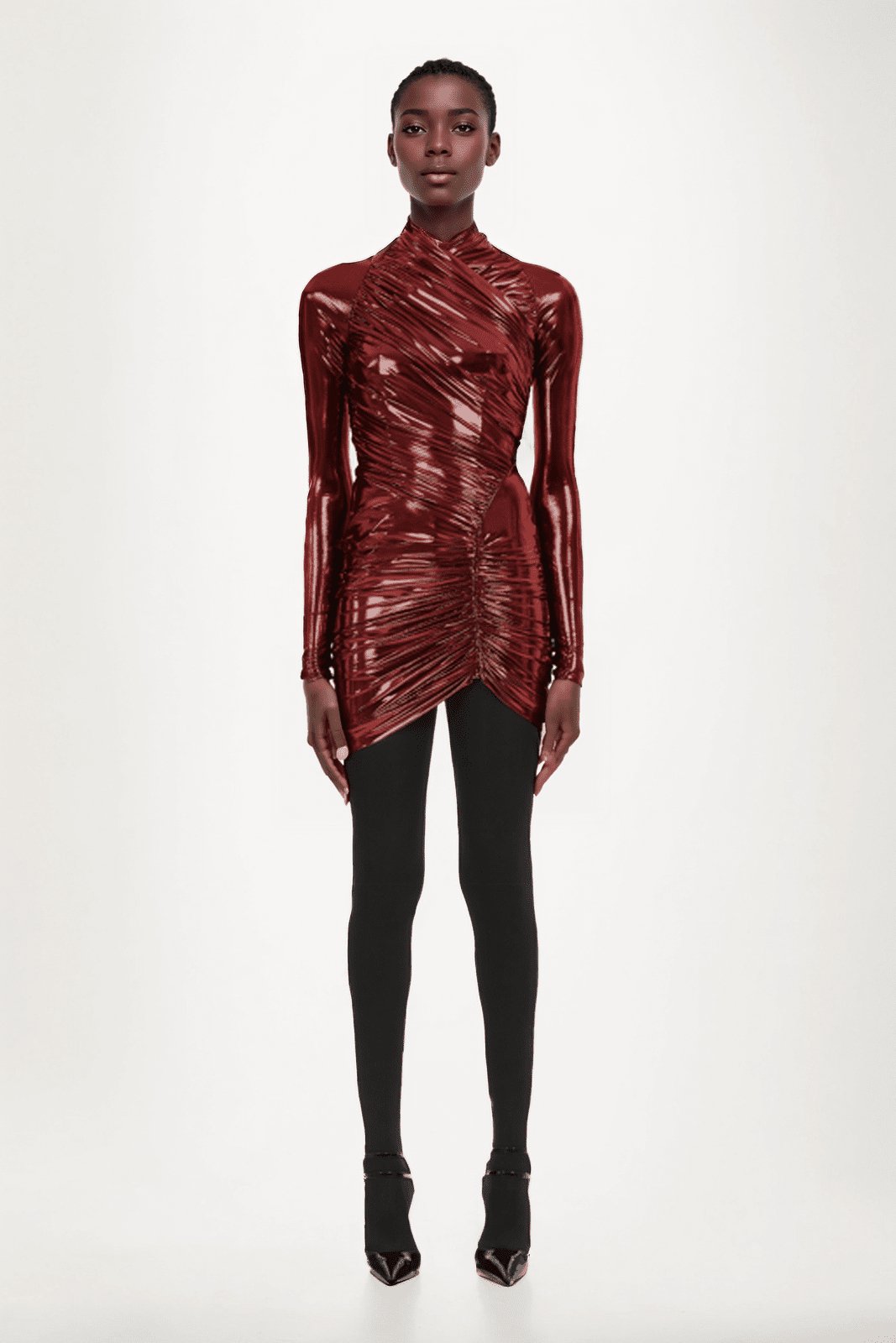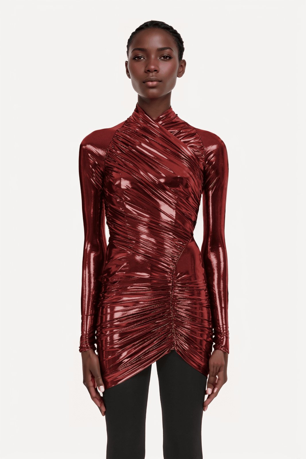Riva Metalik Büzgülü Çözgülü Mini Elbise