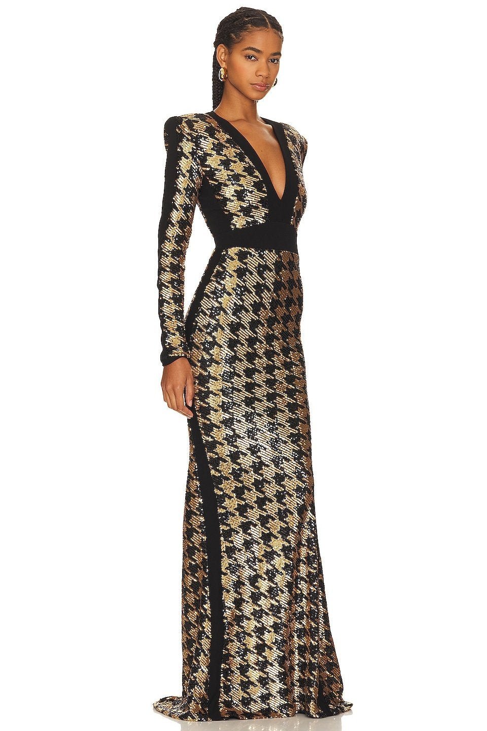 Rosalie Payetler Kazayağı Desenli Maxi Elbise