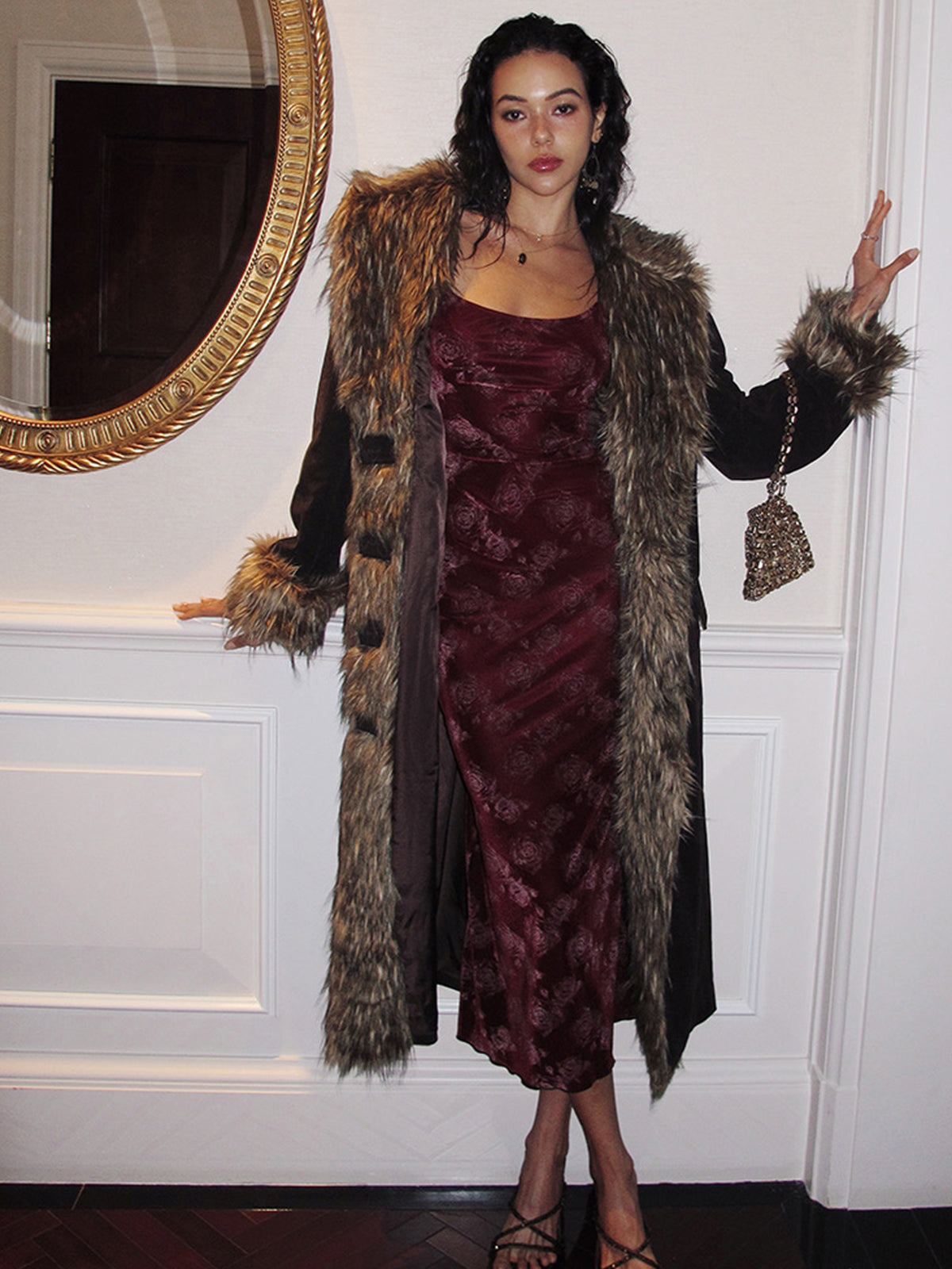 10% İndirimYvonne Diamante Tüylü Pileli Maxi Şifon Elbise