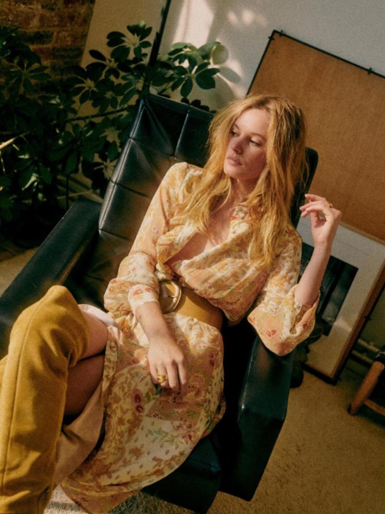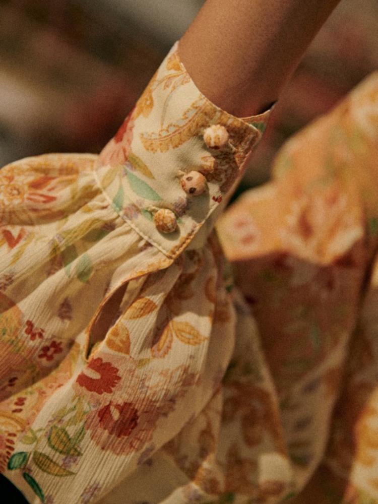 Sadie Çiçek Baskılı Şifon Düğmeli Kuşaklı Midi Gömlek Elbise