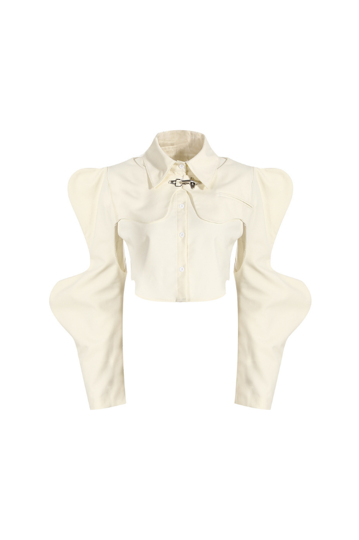 Sarina İki Parça Klips Detaylı Asimetrik Gömlek, sıra dışı tasarımı ve göz kamaştıran stiliyle dolabınızın en özel ve nadide parçalarından olacak…