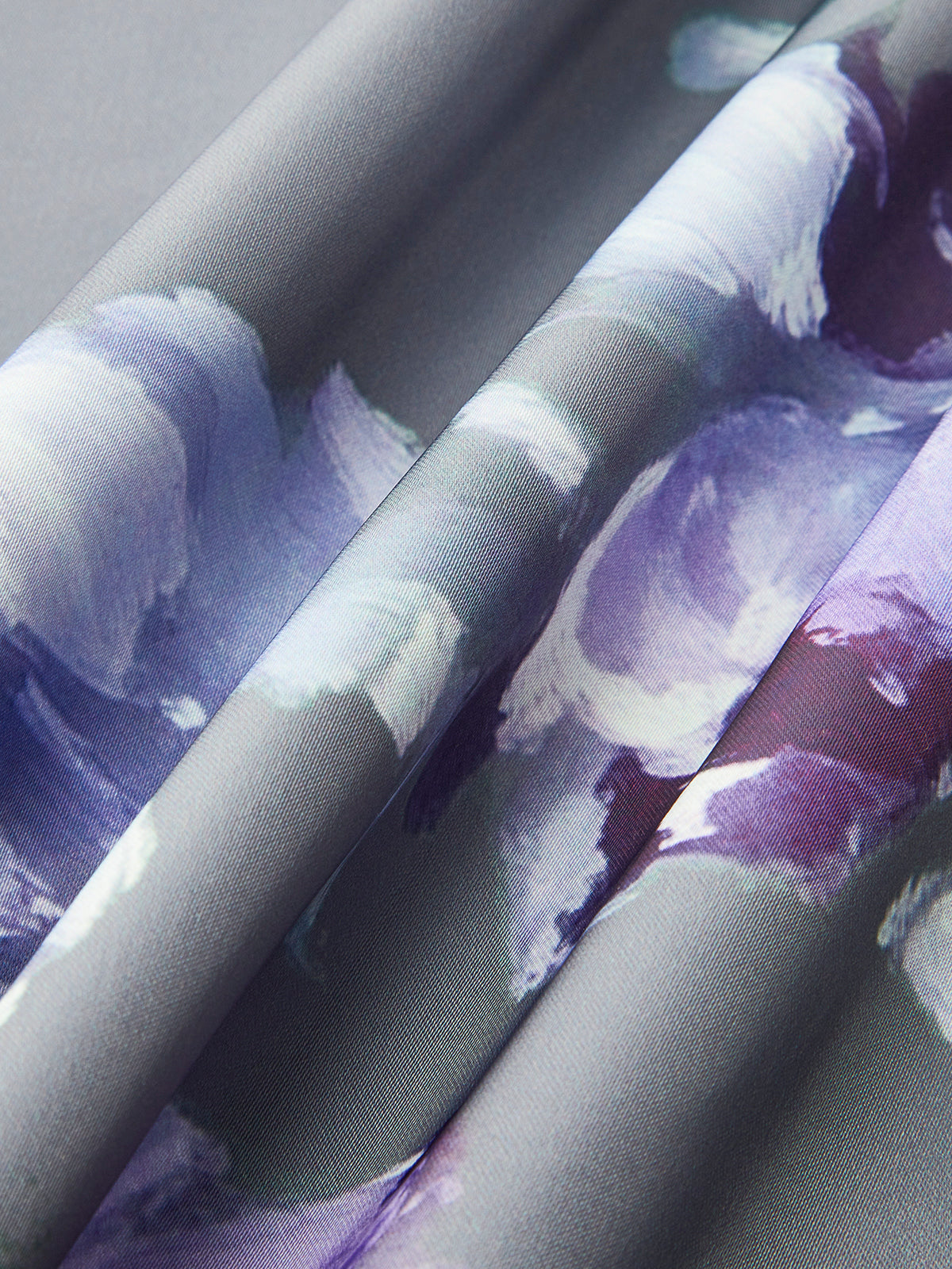 Saten Çiçek Desenli Yan Yırtmaçlı Elbise
