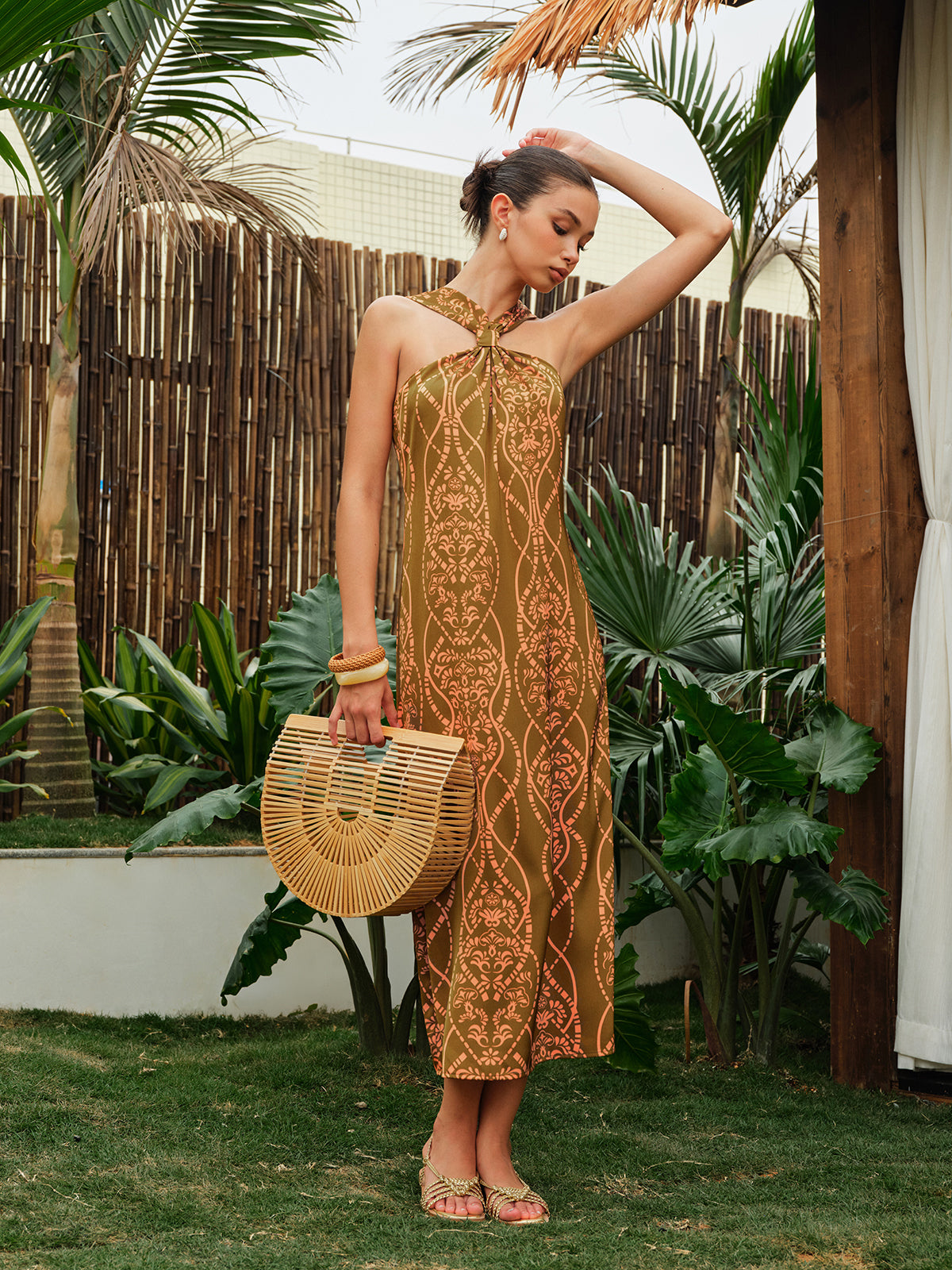 21% İndirimGloria Paisley Baskılı Fırfırlı Uzun Elbise