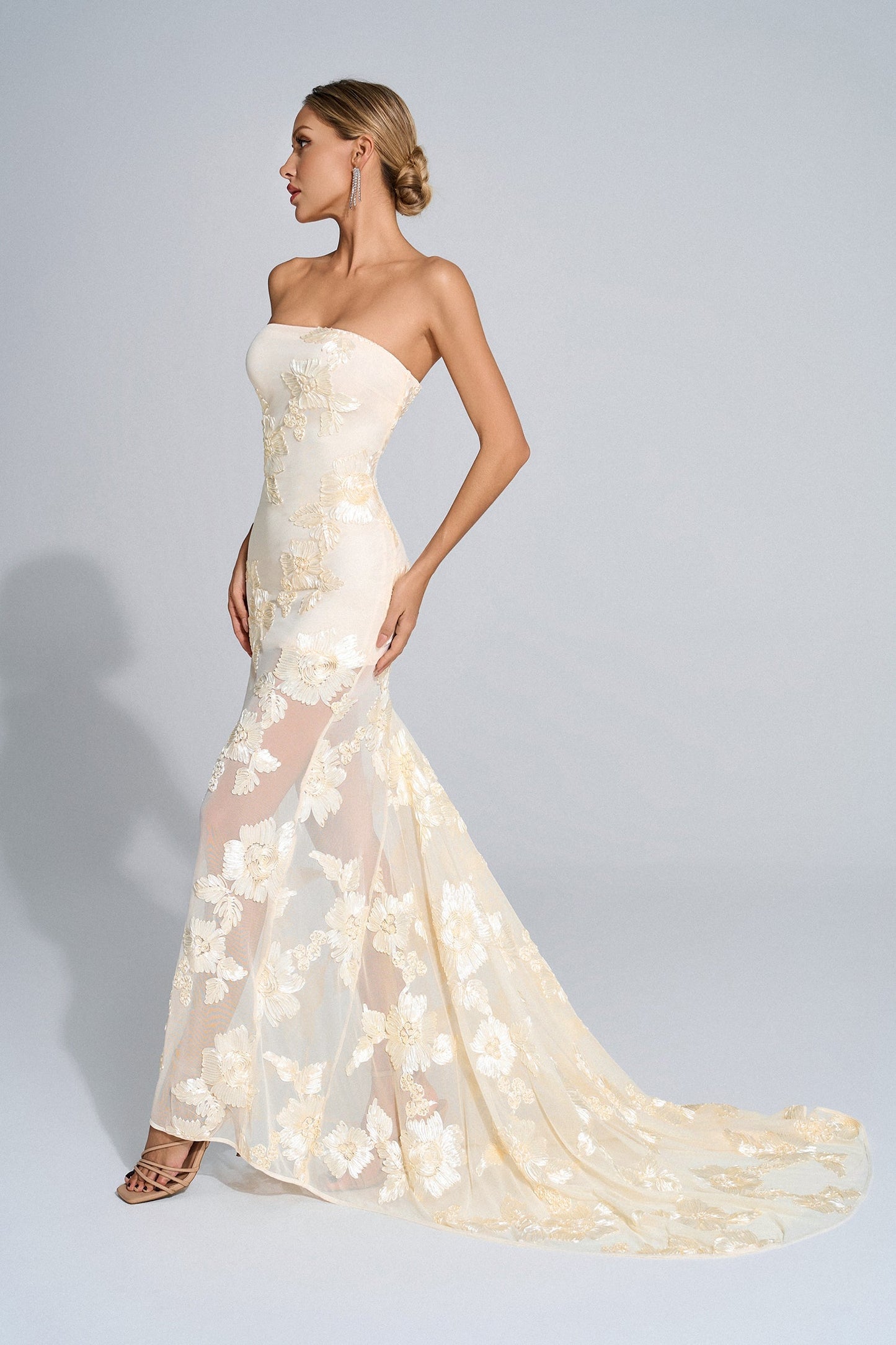 Elbiselerimiz, çağdaş tasarım unsurlarıyla klasik güzellik kavramını yeniden tanımlıyor. Zarif, vücuda oturan siluet, zarif bir görünüm yaratarak sizi gecenin parlayan yıldızı yapar. İster bir galaya, ister bir düğüne veya resmi bir akşam yemeğine katılın, bu elbise zahmetsizce göz alıcı bir görünüm için tercihiniz olacak.