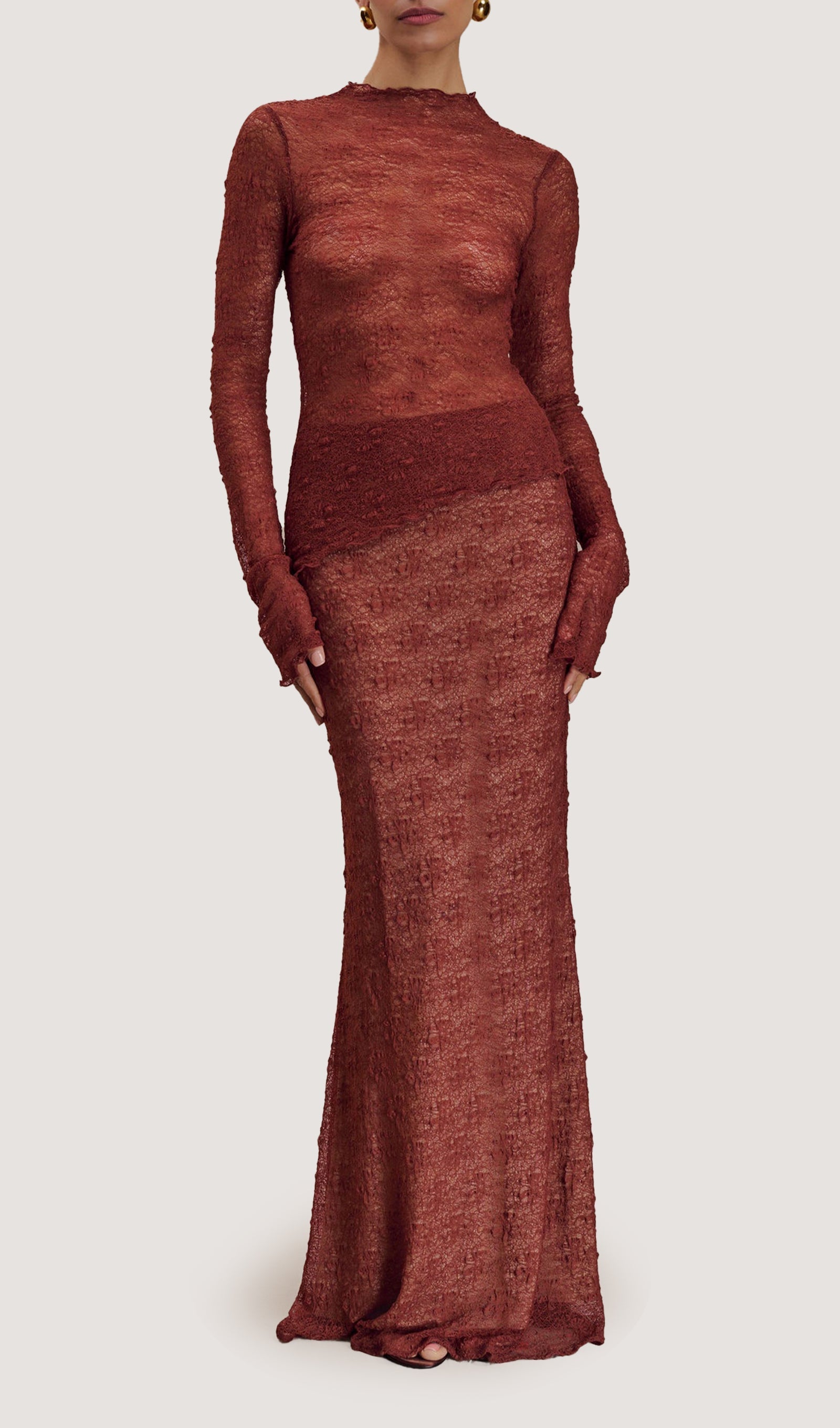 Eloise Uzun Kollu Fiyonklu Maxi Elbise