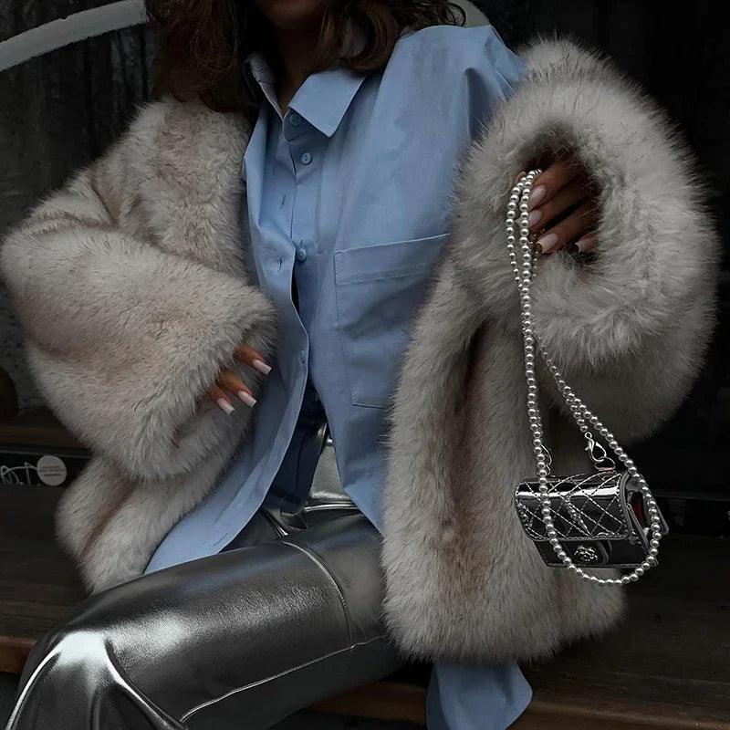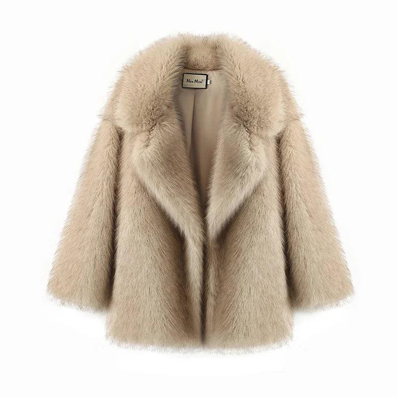Bej, gri ve kahverengi renkleri bulunan bu lüks suni kürk kaban ile kış gardırobunuzu yükseltin. Pelüş dokusu ve önü açık tasarımıyla her durum için sıcaklık ve sofistikeliğin mükemmel bir karışımıdır.