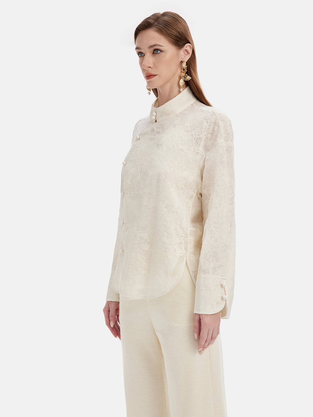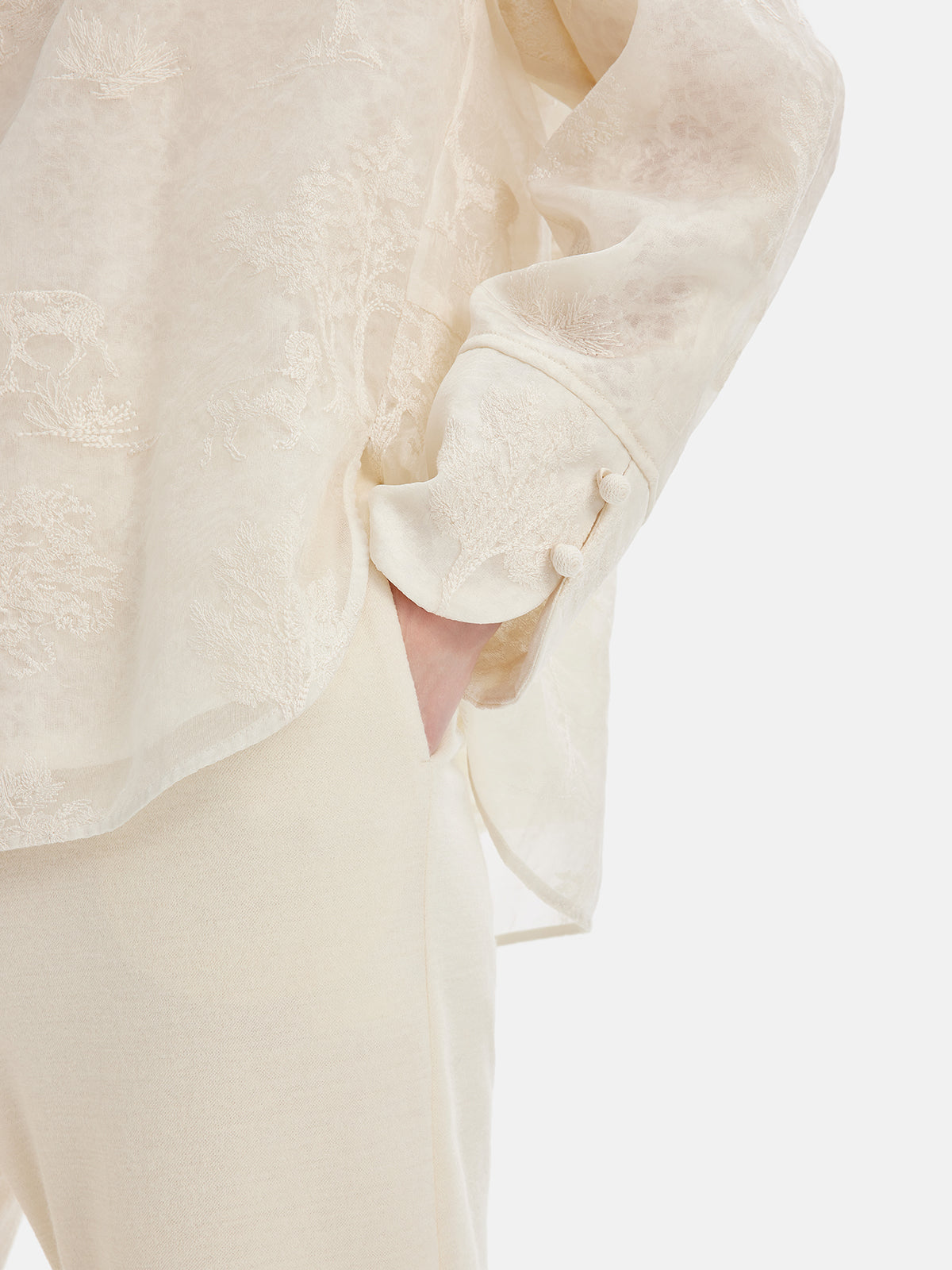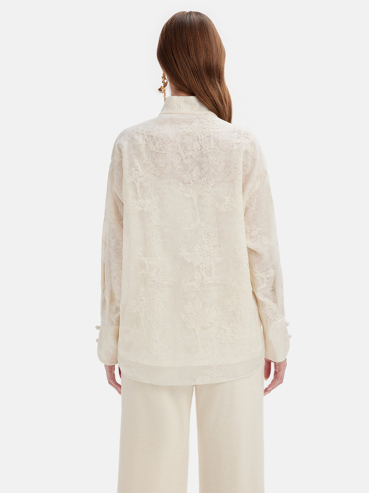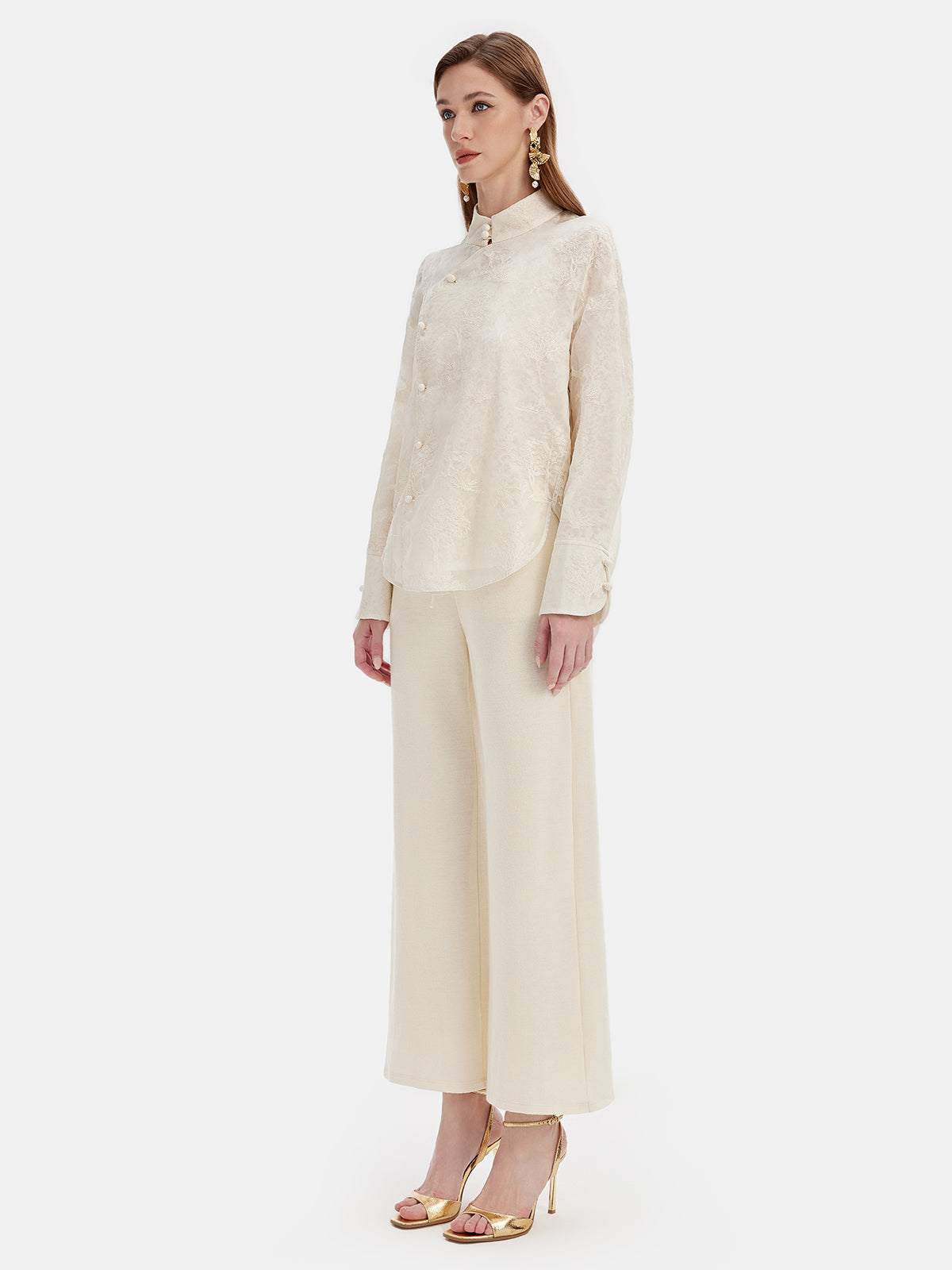 Glam Zarif Panelli Tül Uzun Kollu A Kesim Maxi Elbise