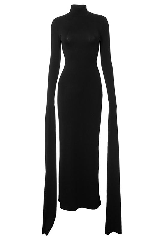 Simma Sırtı Açık Uzun Kollu Uzun Elbise