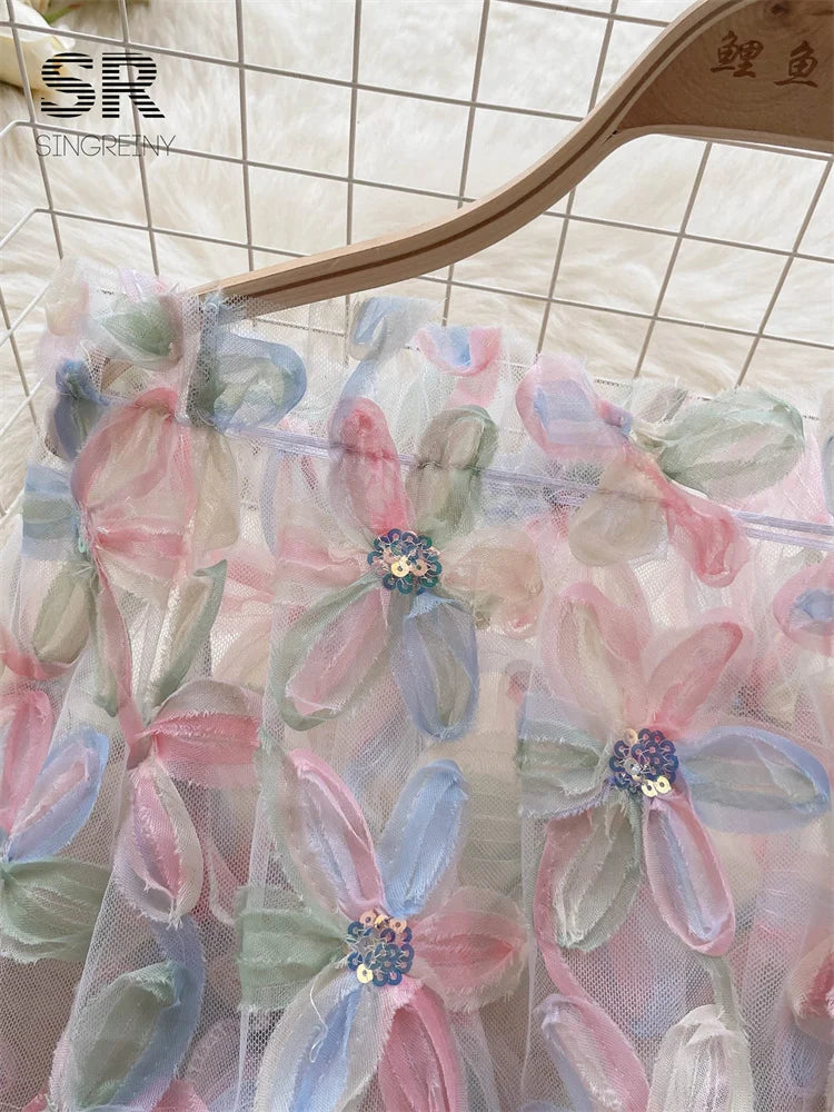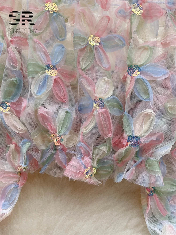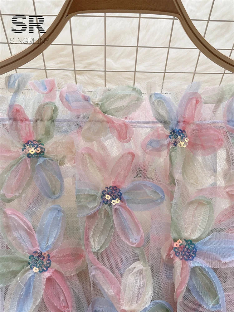 Biberiye Siyah 3D Çiçekli Uzun Elbise