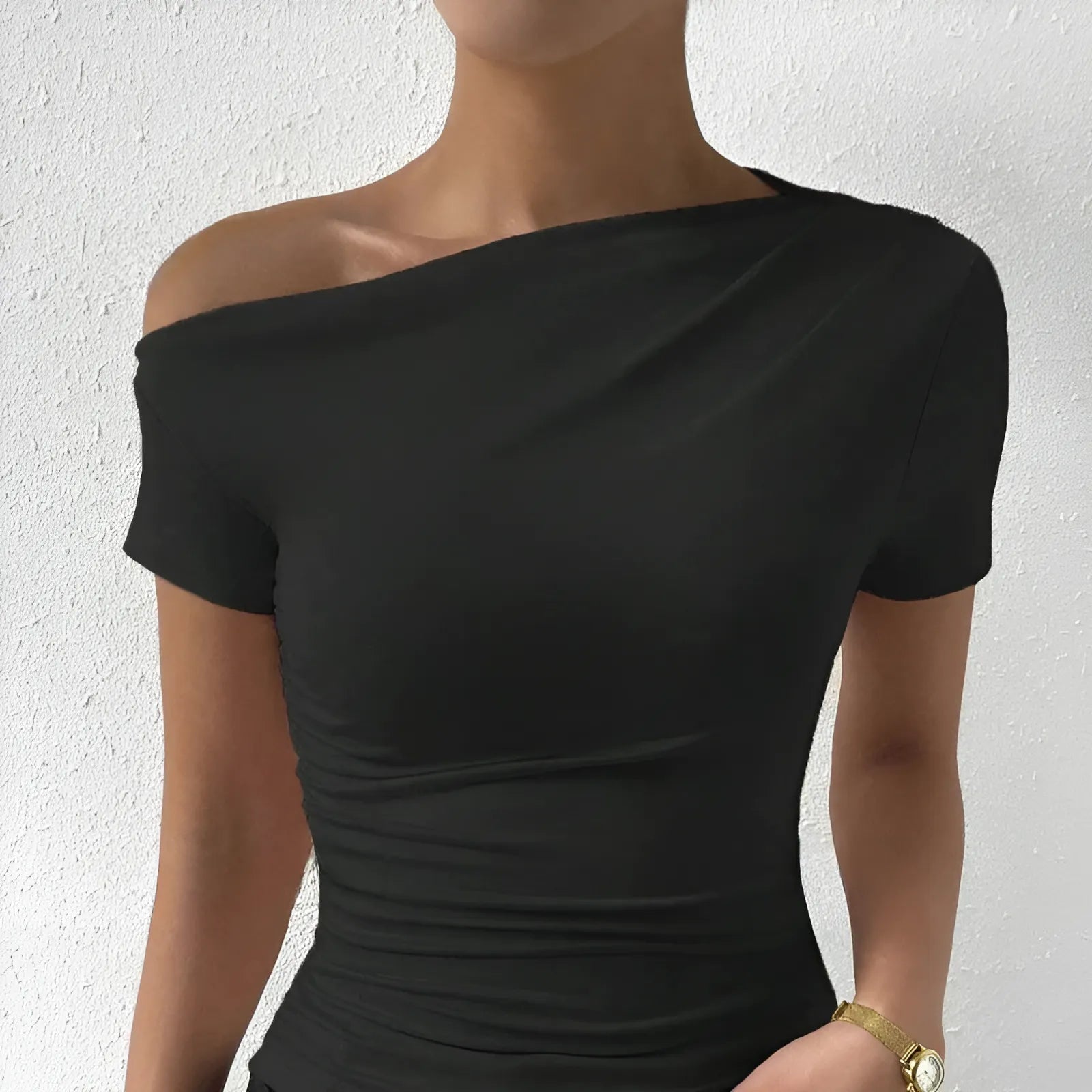 Tek Omuz Kayık Yaka Büzgü Dikiş Bluz