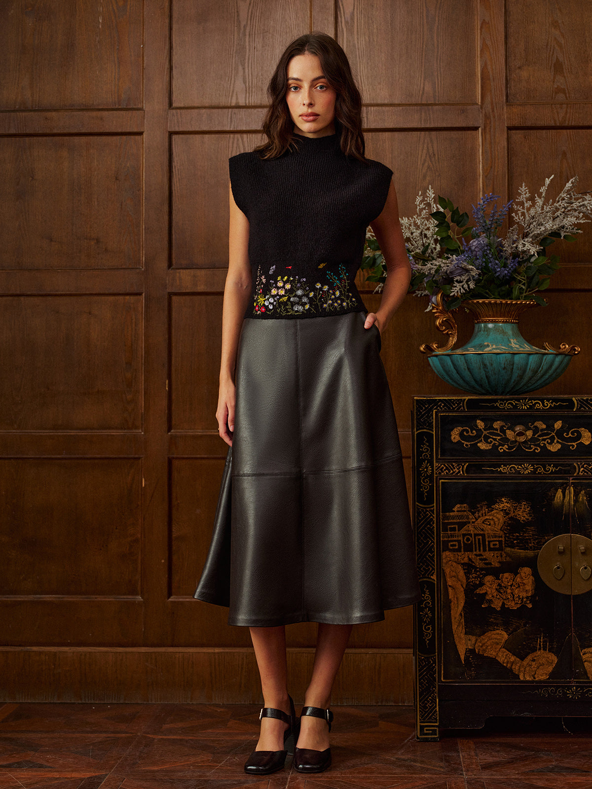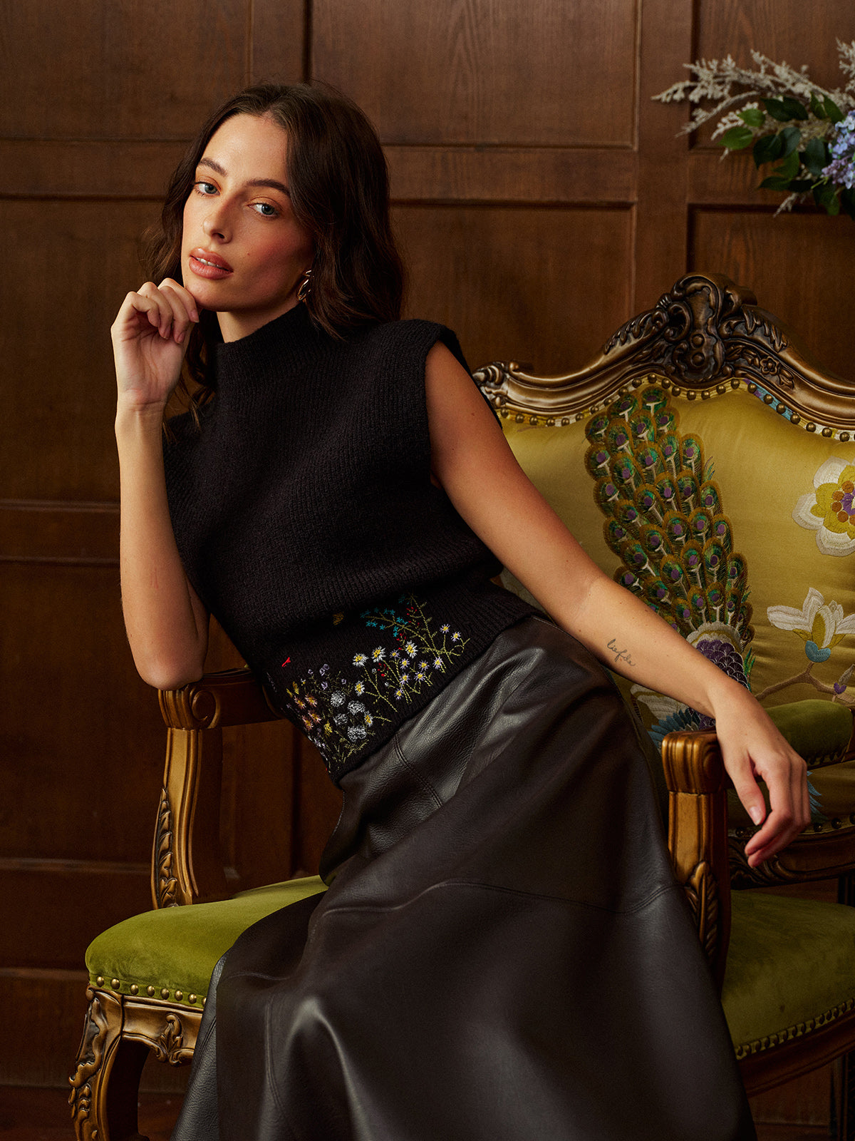 Dik Yaka Nakışlı Çiçekli Kazak Yelek