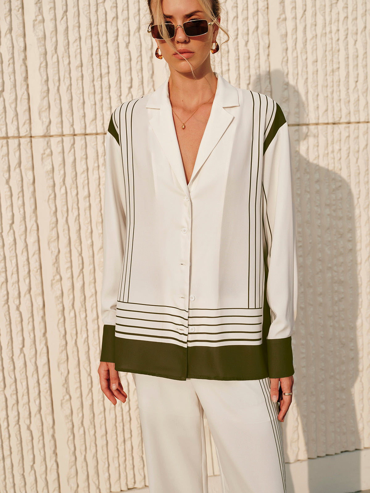 Çizgili Baskılı Yaka Gömlek