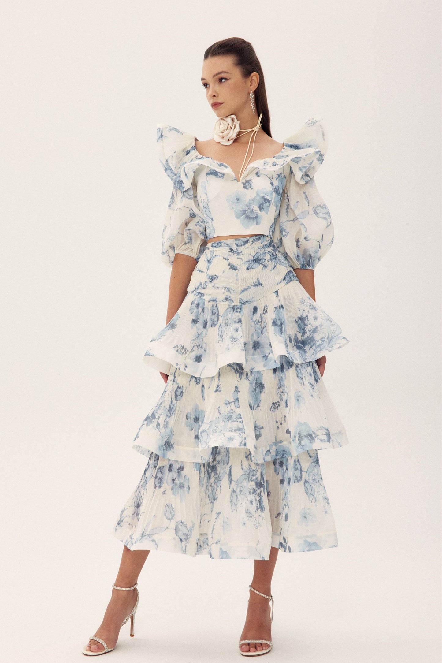 Gloria Paisley Baskılı Fırfırlı Uzun Elbise