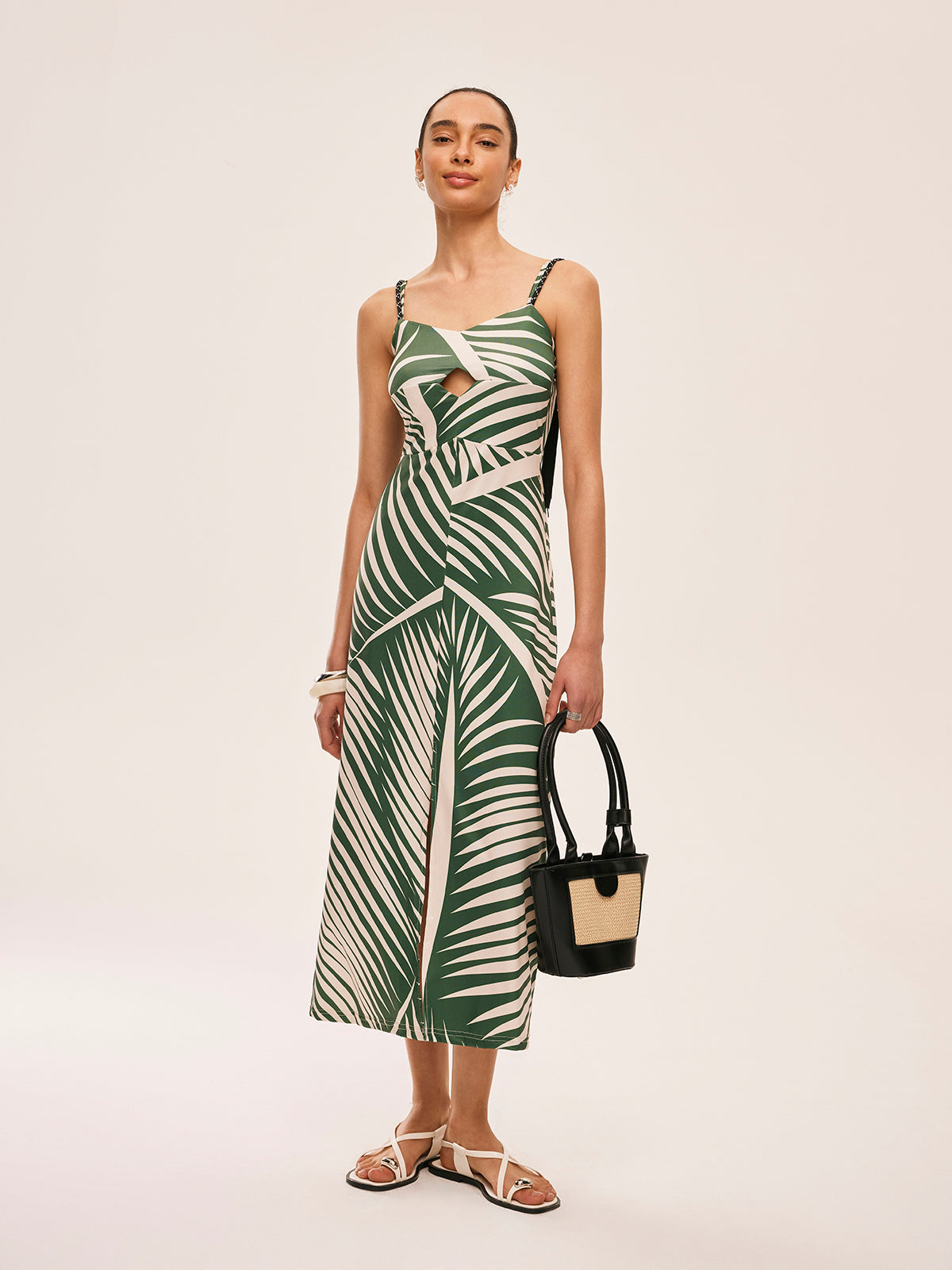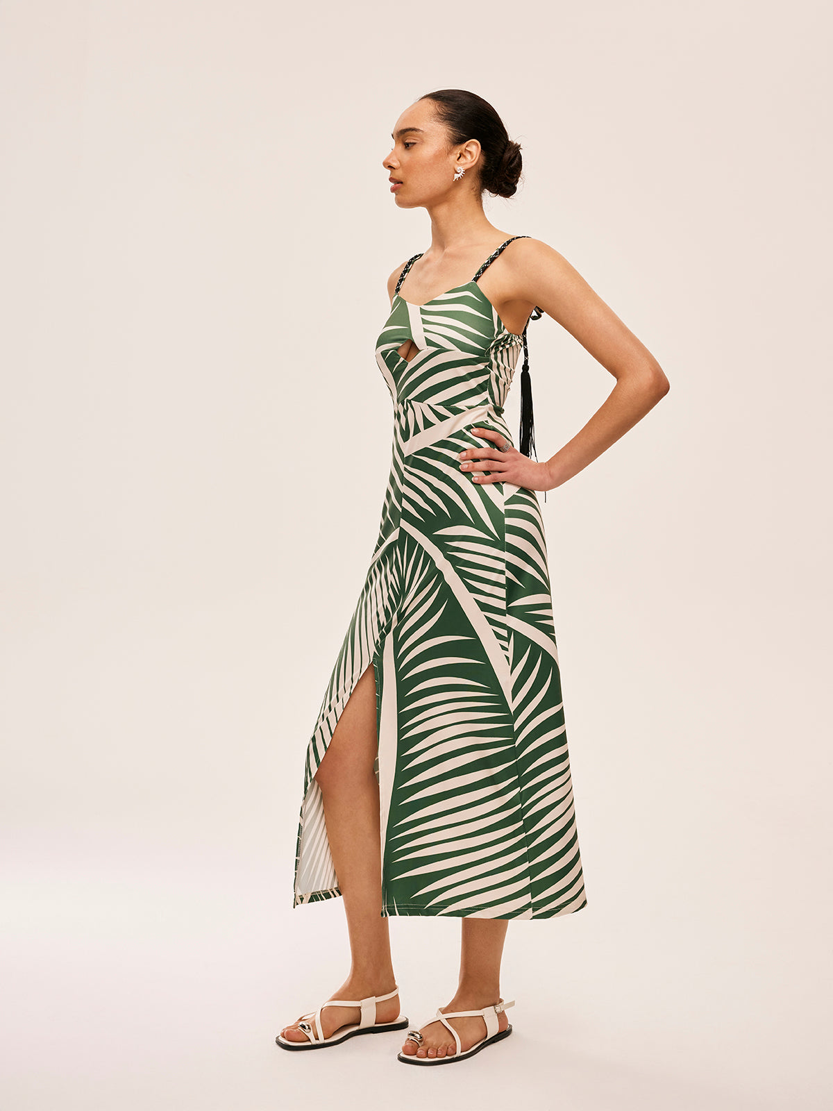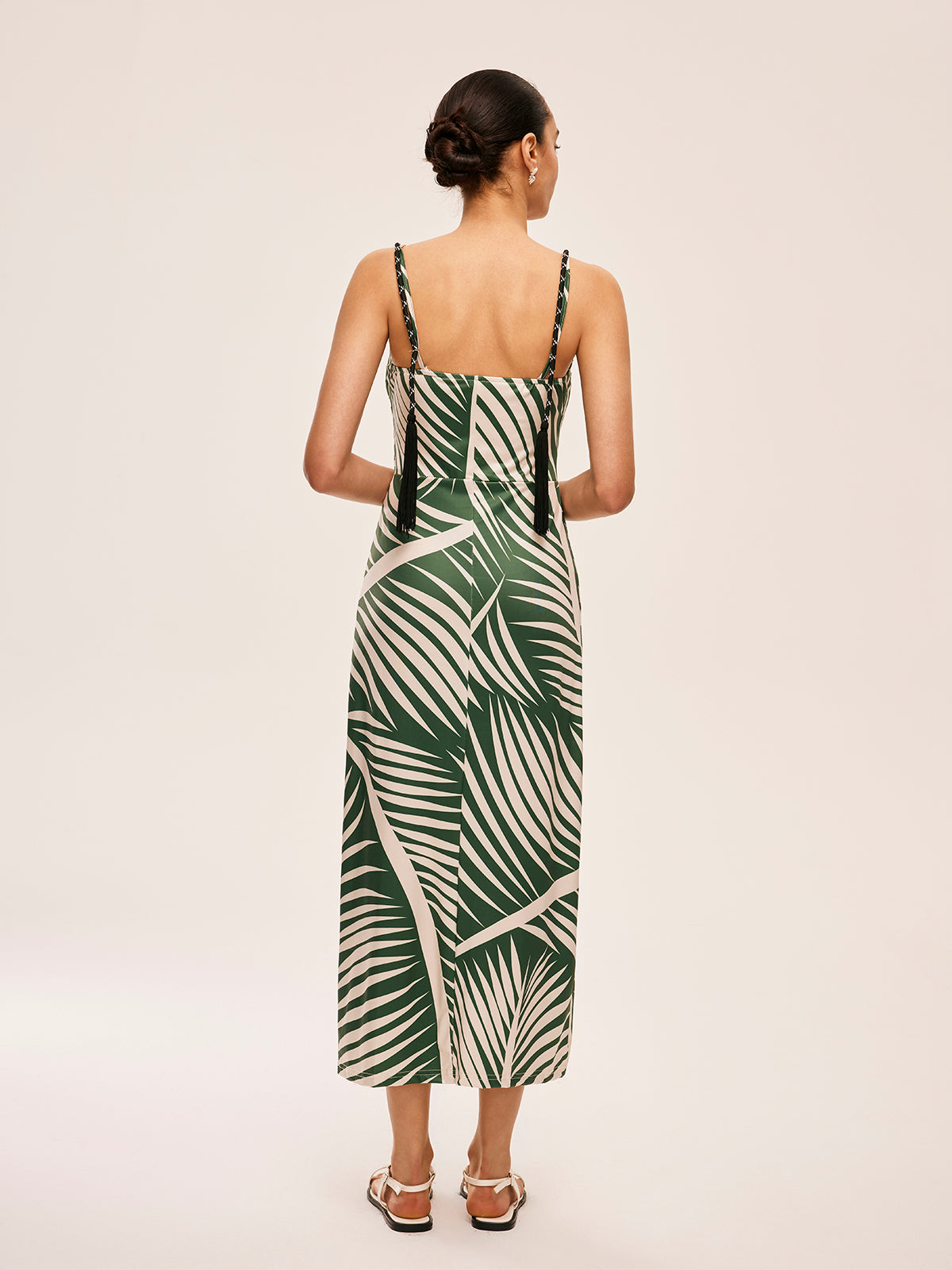 Püskül Detaylı Yırtmaçlı Askılı Elbise