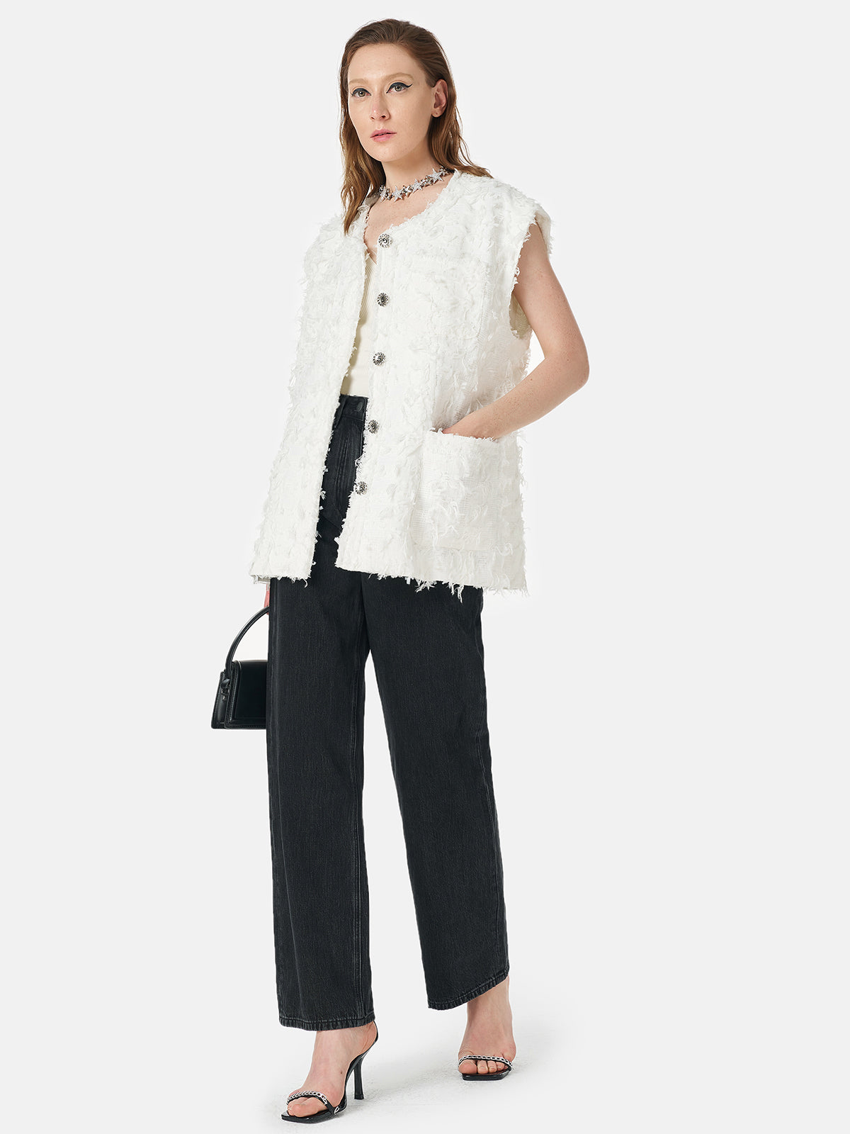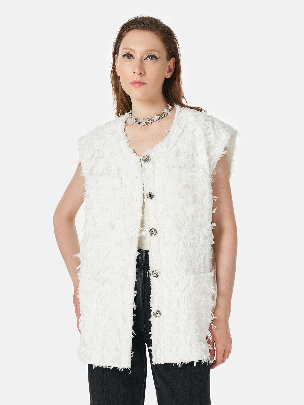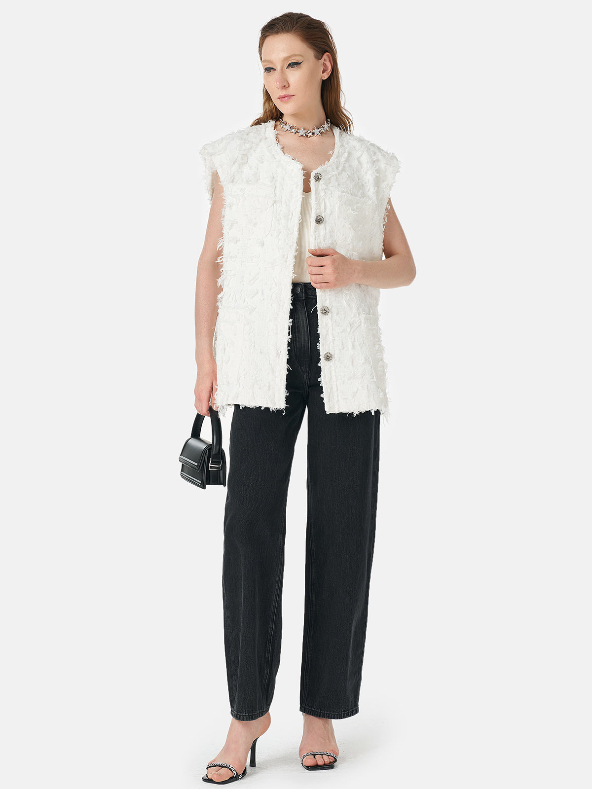 Yvonne Diamante Tüylü Pileli Maxi Şifon Elbise