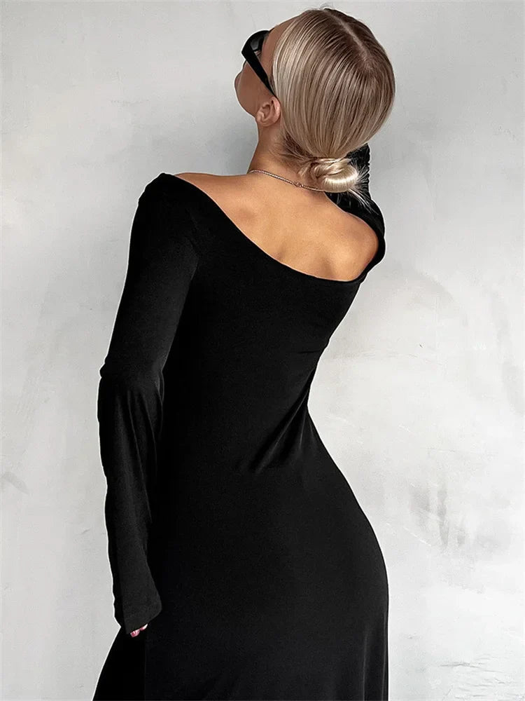 Kennedi Siyah Kolsuz Hollow Maxi Elbise