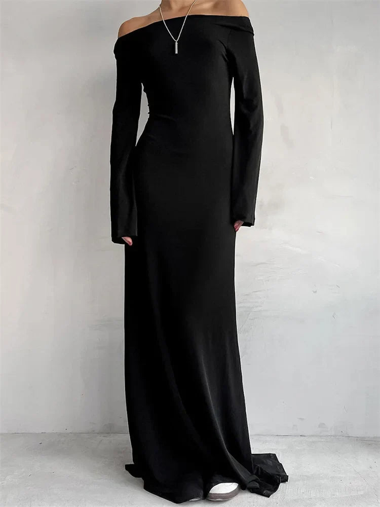 Eloise Uzun Kollu Fiyonklu Maxi Elbise