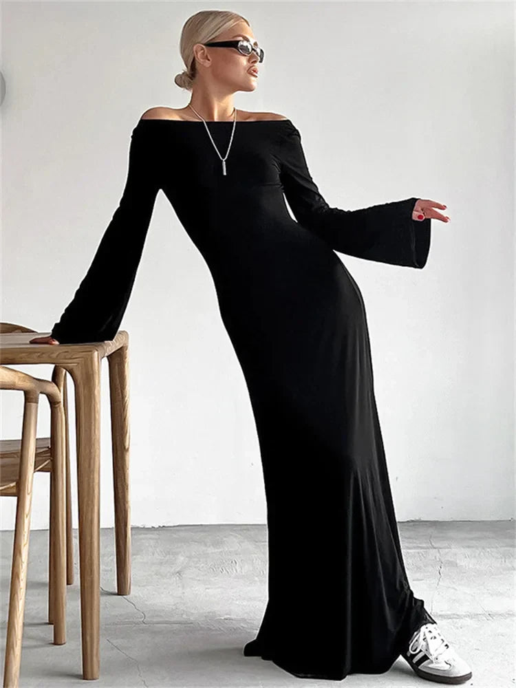 Madonna Yaka İspanyol Kol Maxi Elbise