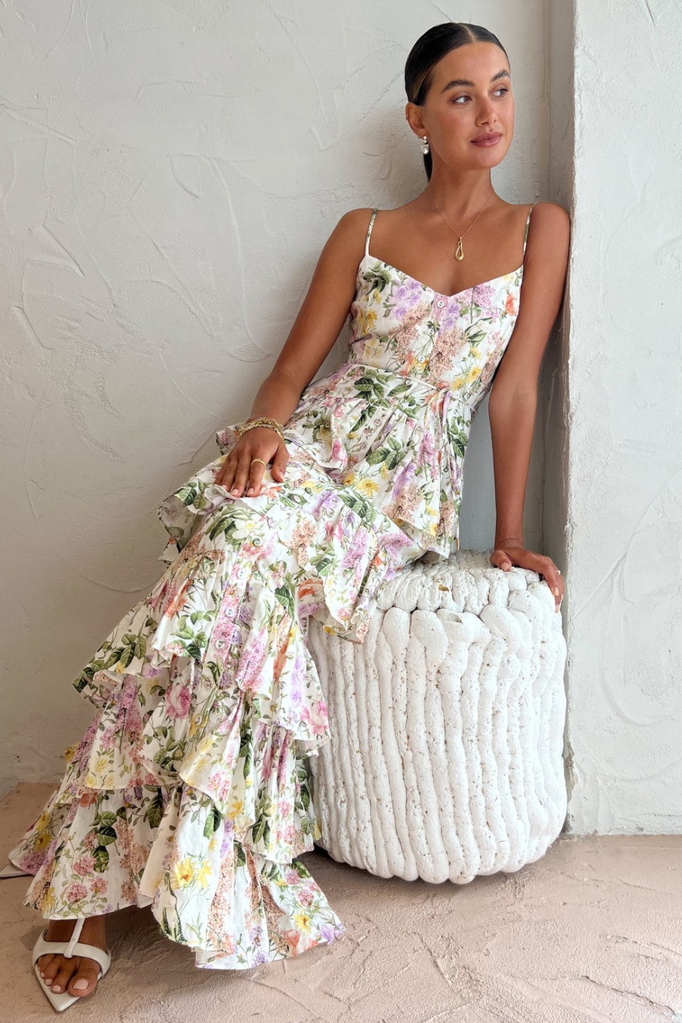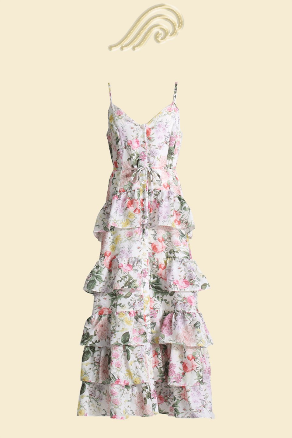 Gloria Paisley Baskılı Fırfırlı Uzun Elbise