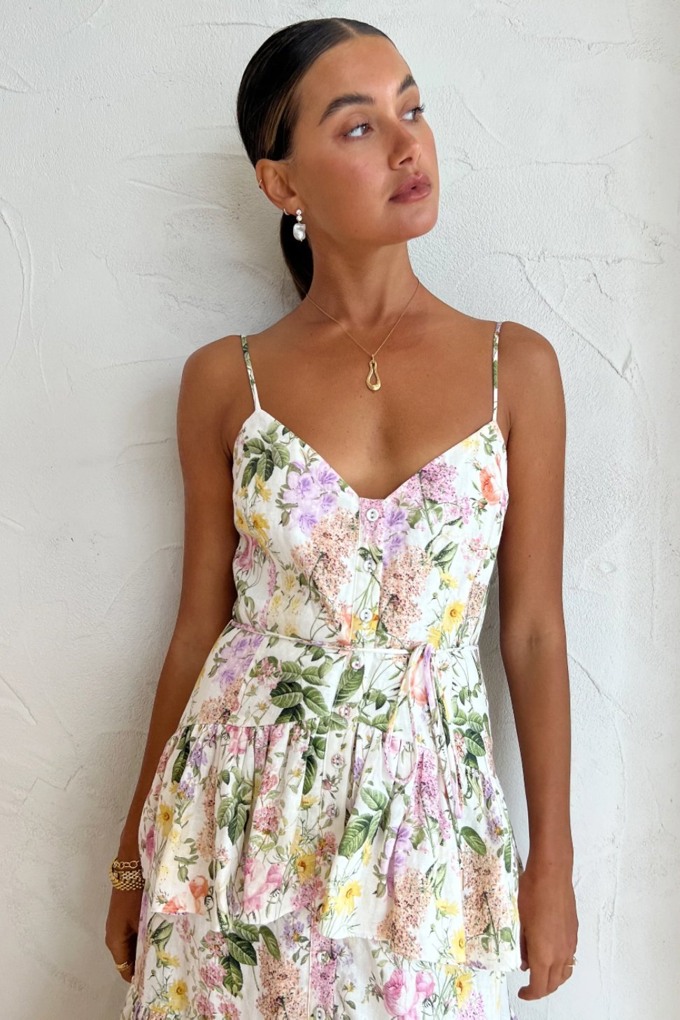 Nina Çiçek İşlemeli Payetler Maxi Elbise