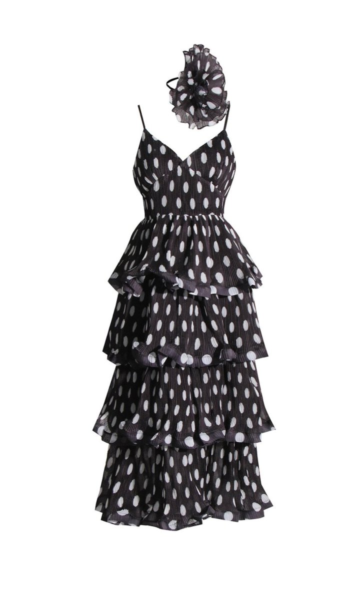 Biberiye Siyah 3D Çiçekli Uzun Elbise