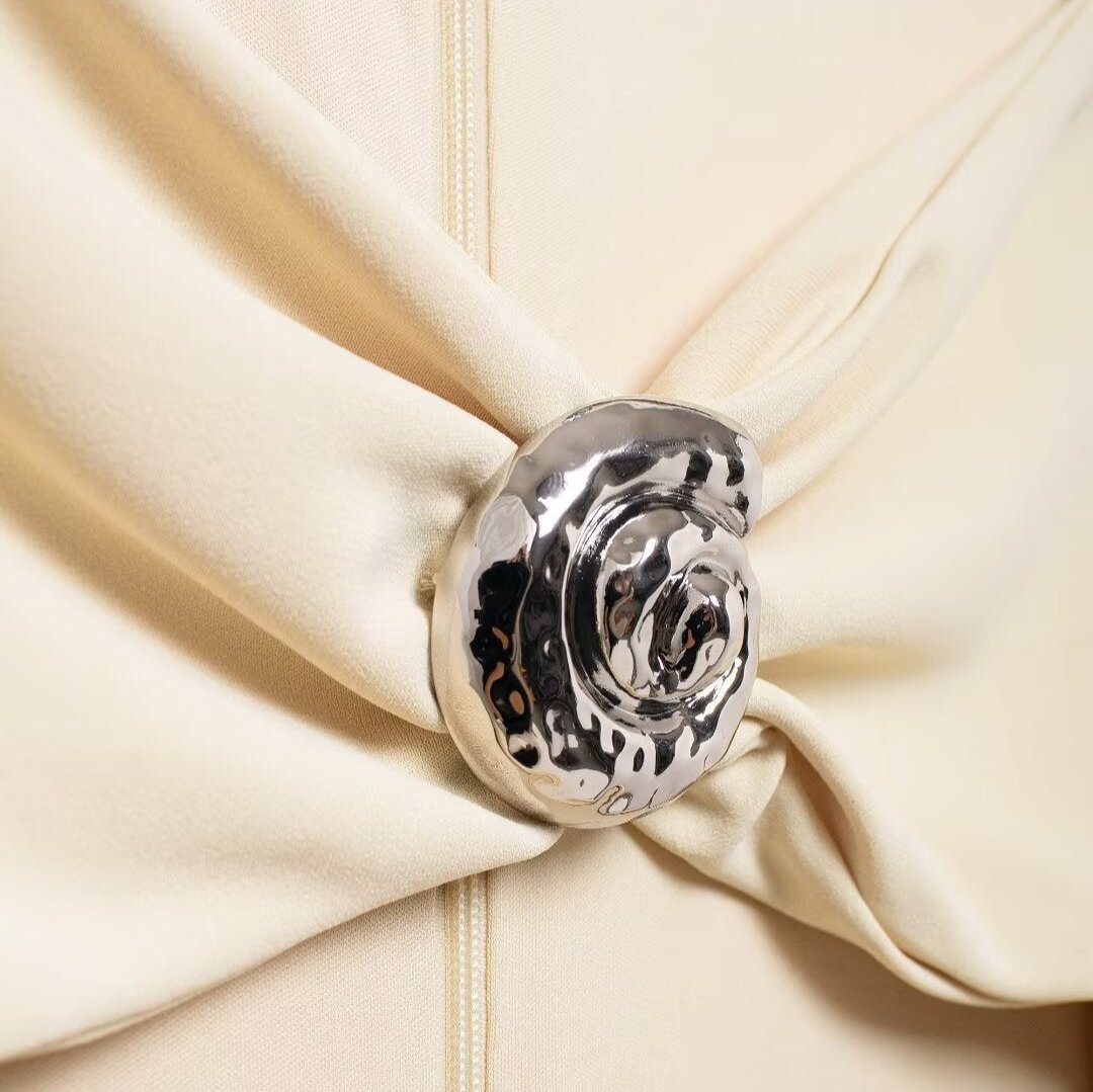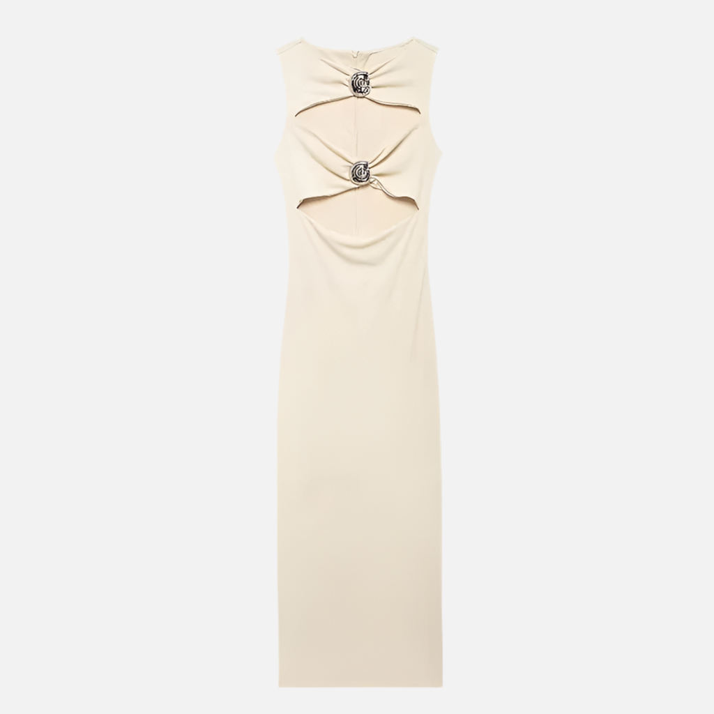 Riviera Göğüs Çift Metal Detay Uzun Elbise
