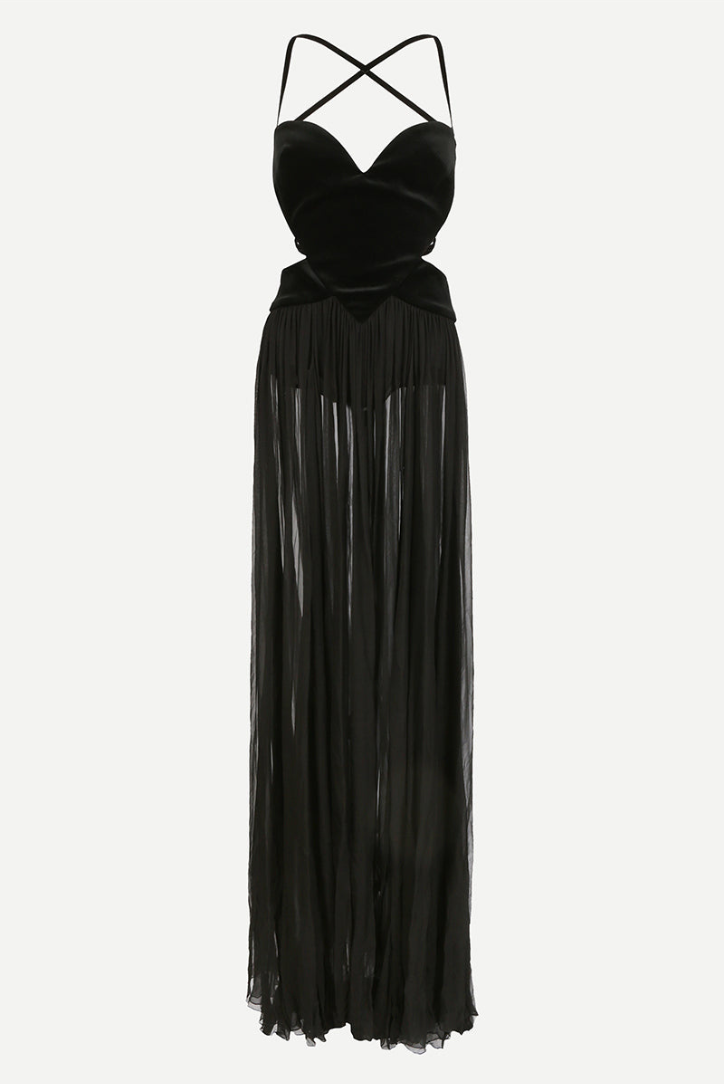 Kennedi Siyah Kolsuz Hollow Maxi Elbise