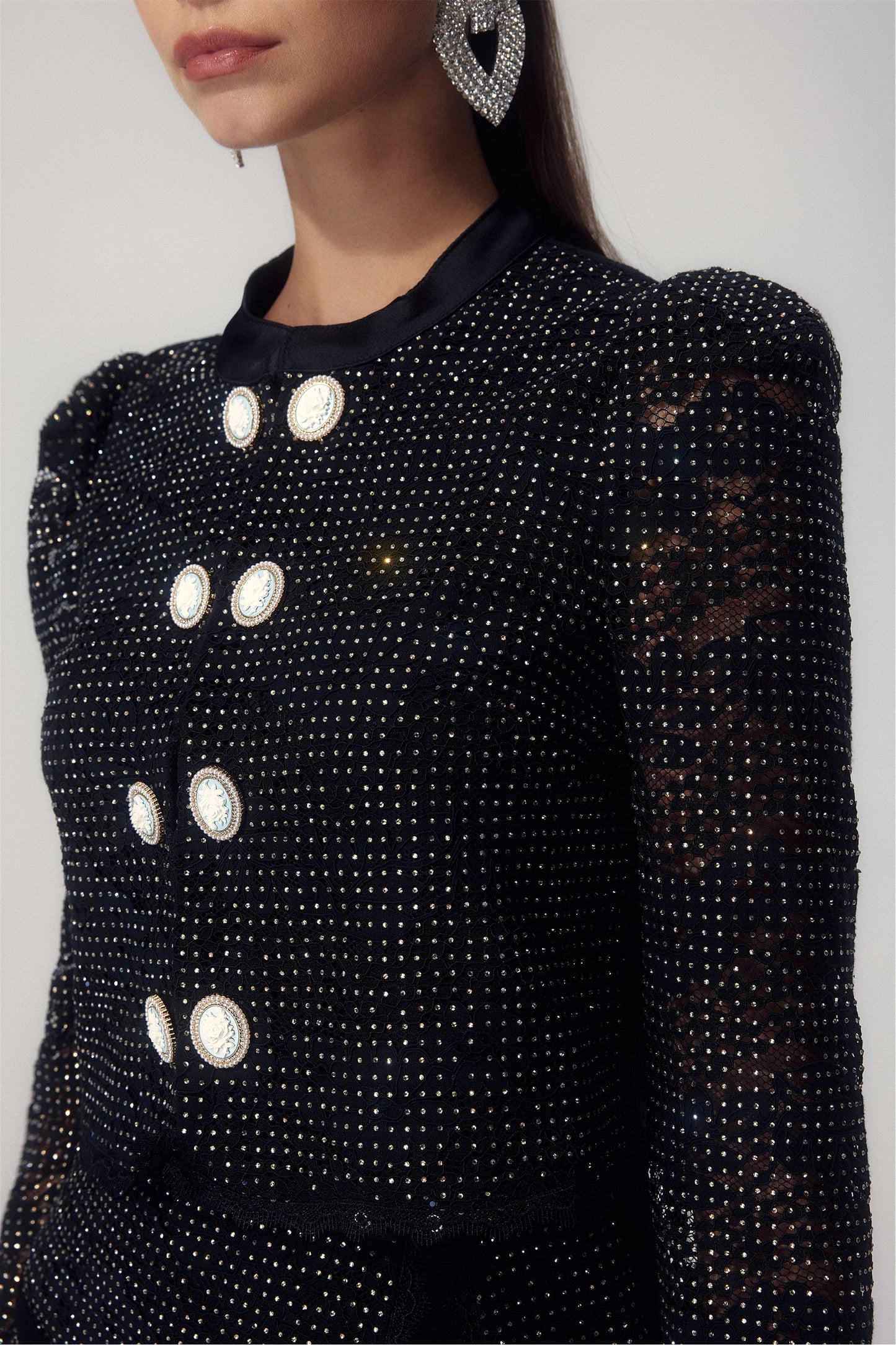 Lorelei Siyah Dantel Jakarlı Mini Elbise