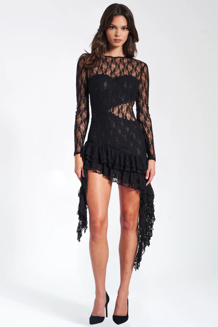 Lorelei Siyah Dantel Jakarlı Mini Elbise