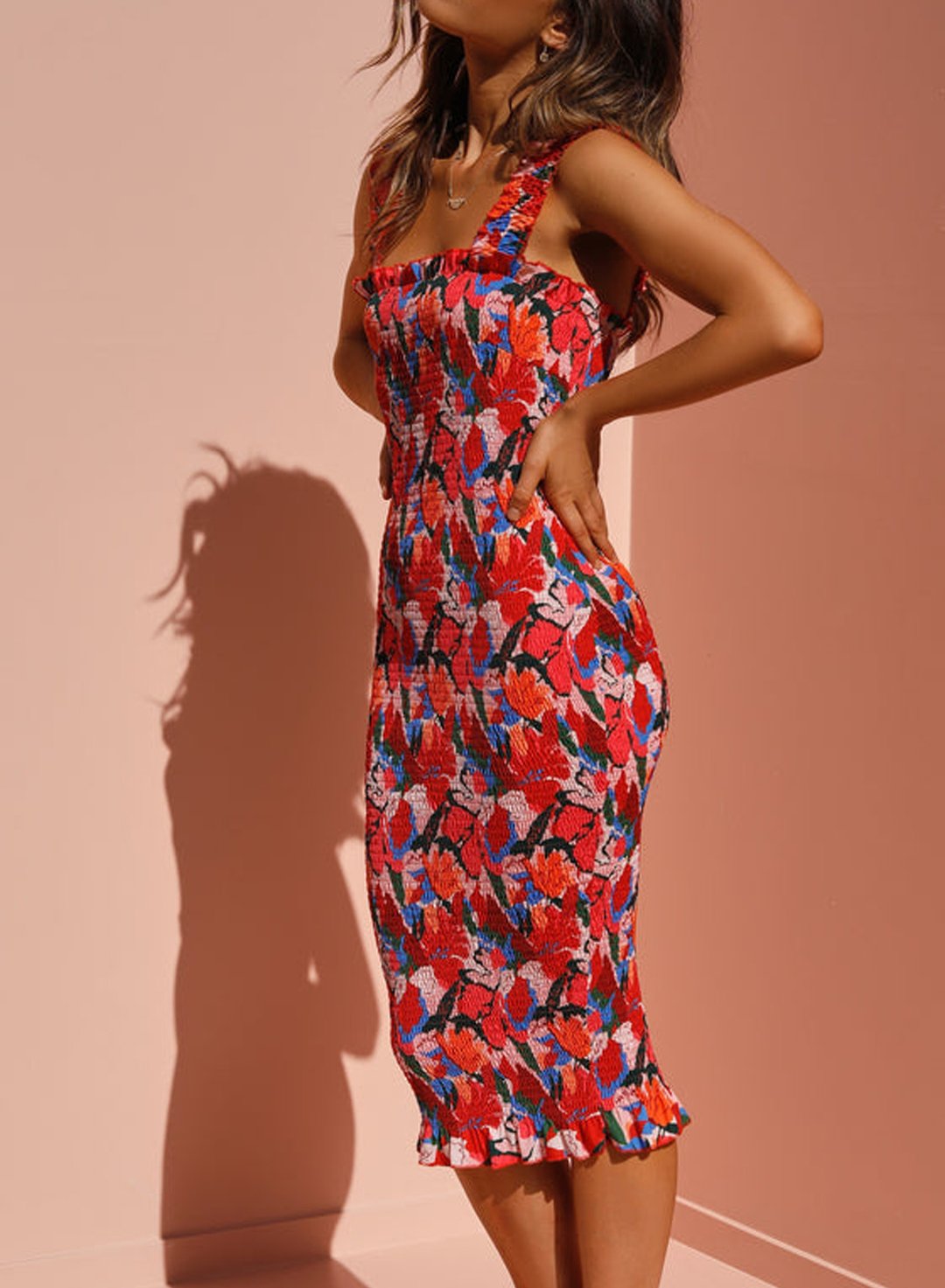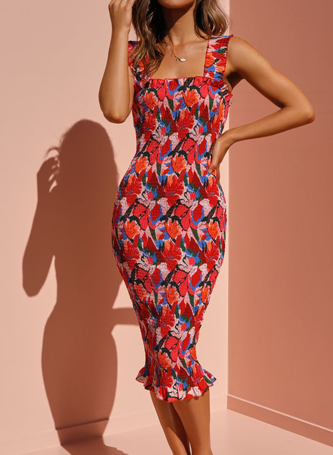 Gloria Paisley Baskılı Fırfırlı Uzun Elbise