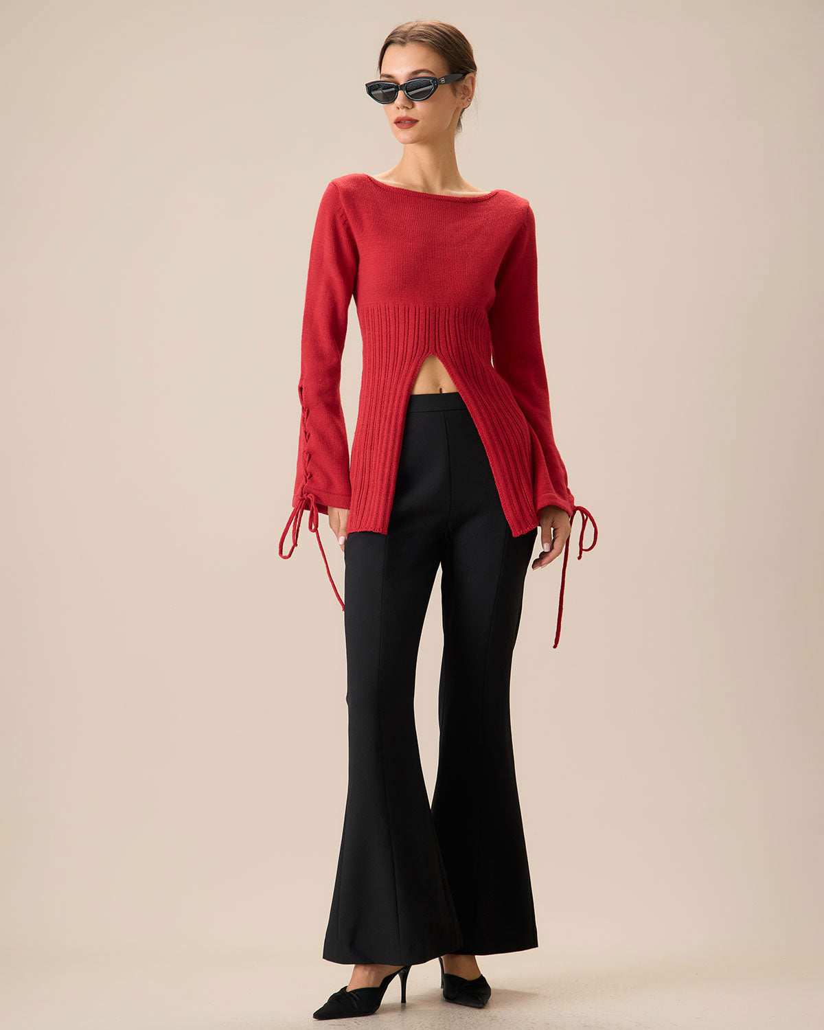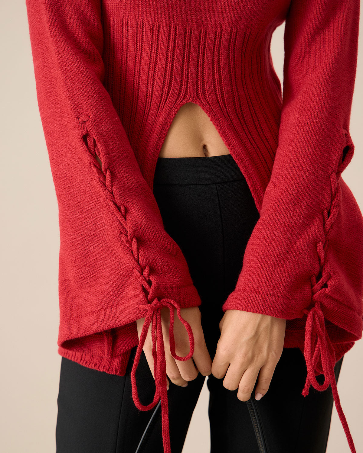Kırmızı Fırfırlı Kol Yırtmaçlı Kazak