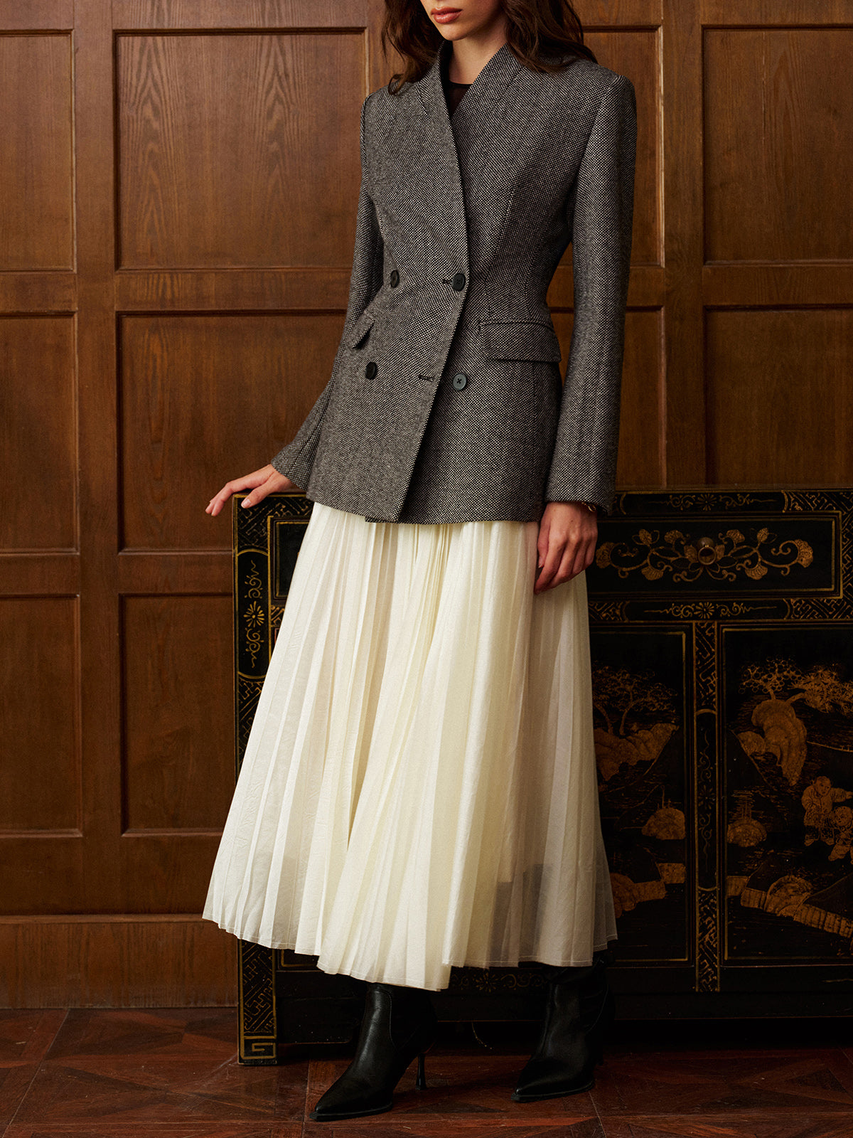Yvonne Diamante Tüylü Pileli Maxi Şifon Elbise
