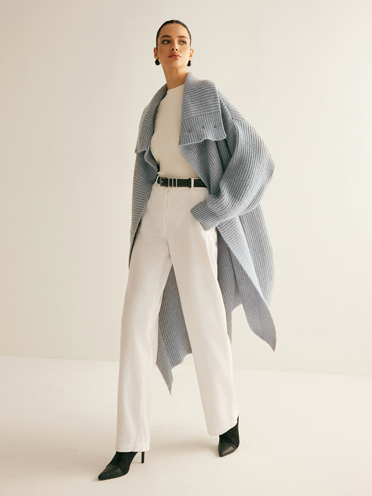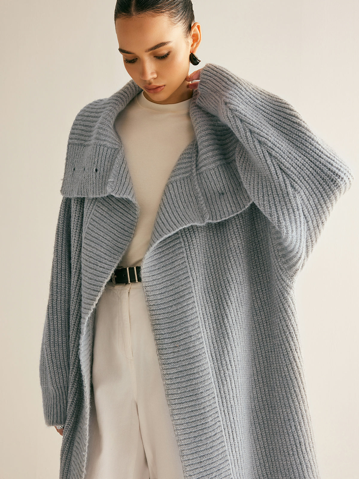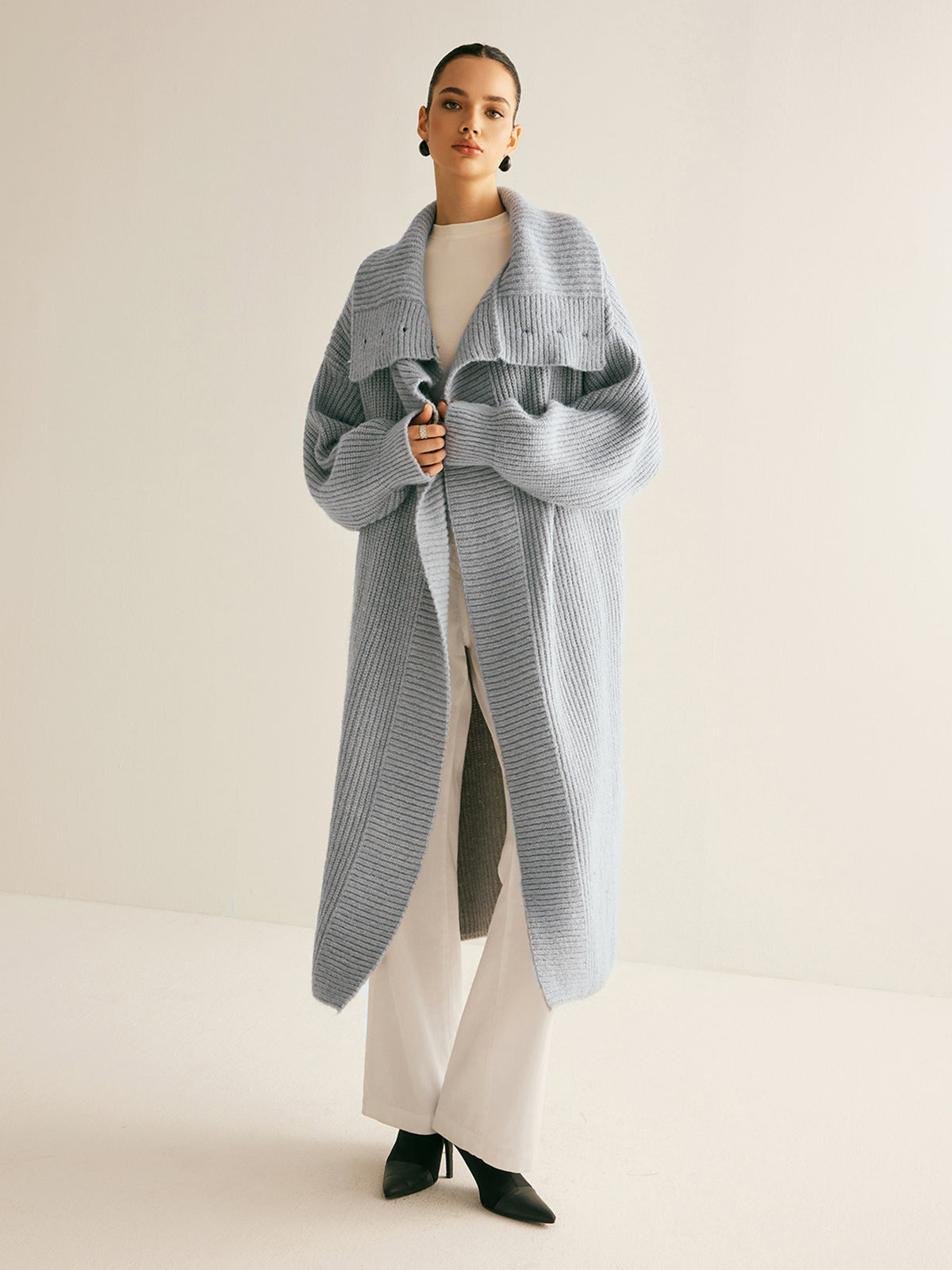 Yaka Fularlı Ribanalı Uzun Hırka