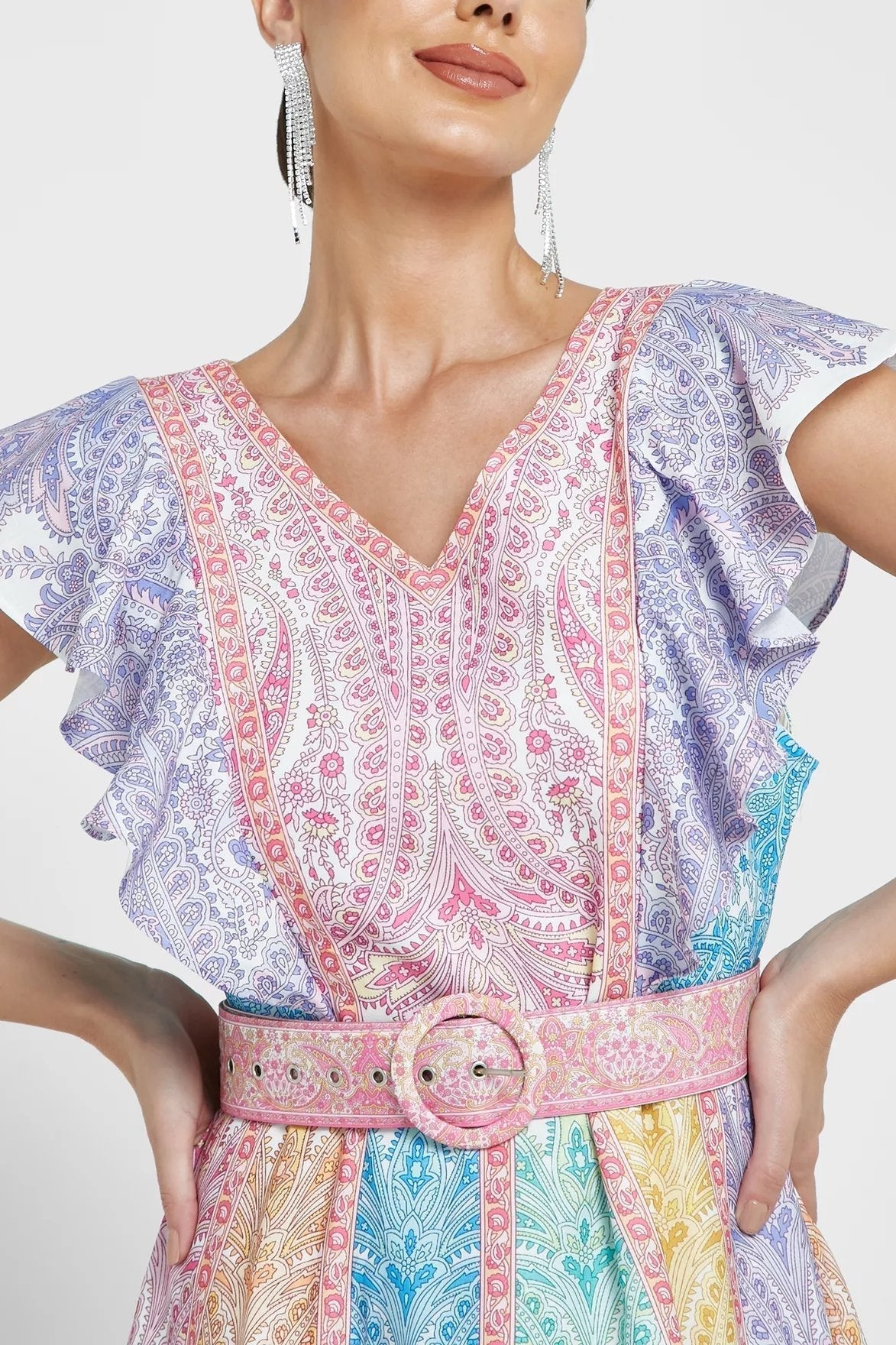 Gloria Paisley Baskılı Fırfırlı Uzun Elbise