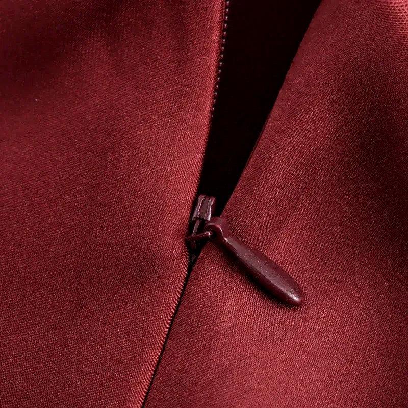 Sırt dekolteli şık bir tasarıma ve zengin, lüks bir renk tonuna sahip bu çarpıcı halter yakalı saten maksi elbise ile bir açıklama yapın. Akşam etkinlikleri, partiler veya göz alıcı bir gece için mükemmel olan bu elbise, zarafet ve sofistike bir görünüm sergiler. Zamansız, baş döndürücü bir görünüm için minimal takılar ve topuklu ayakkabılarla kombinleyin.