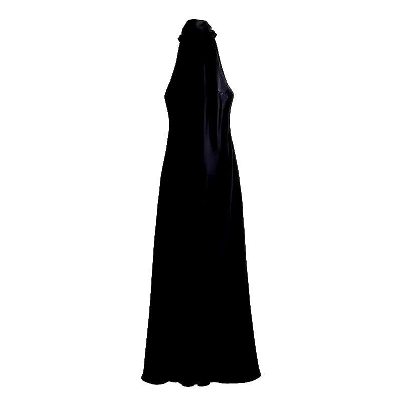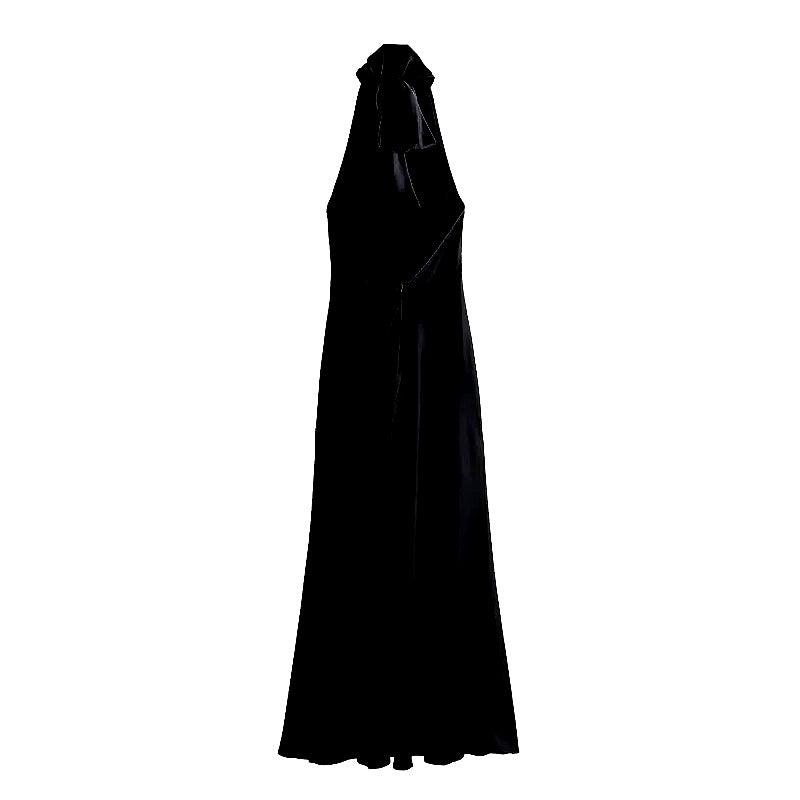 Zarif Halter Saten Sırtı Açık Maksi Elbise