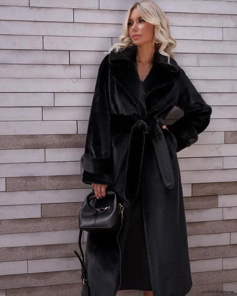 Zarif Kuşaklı Uzun Kaban